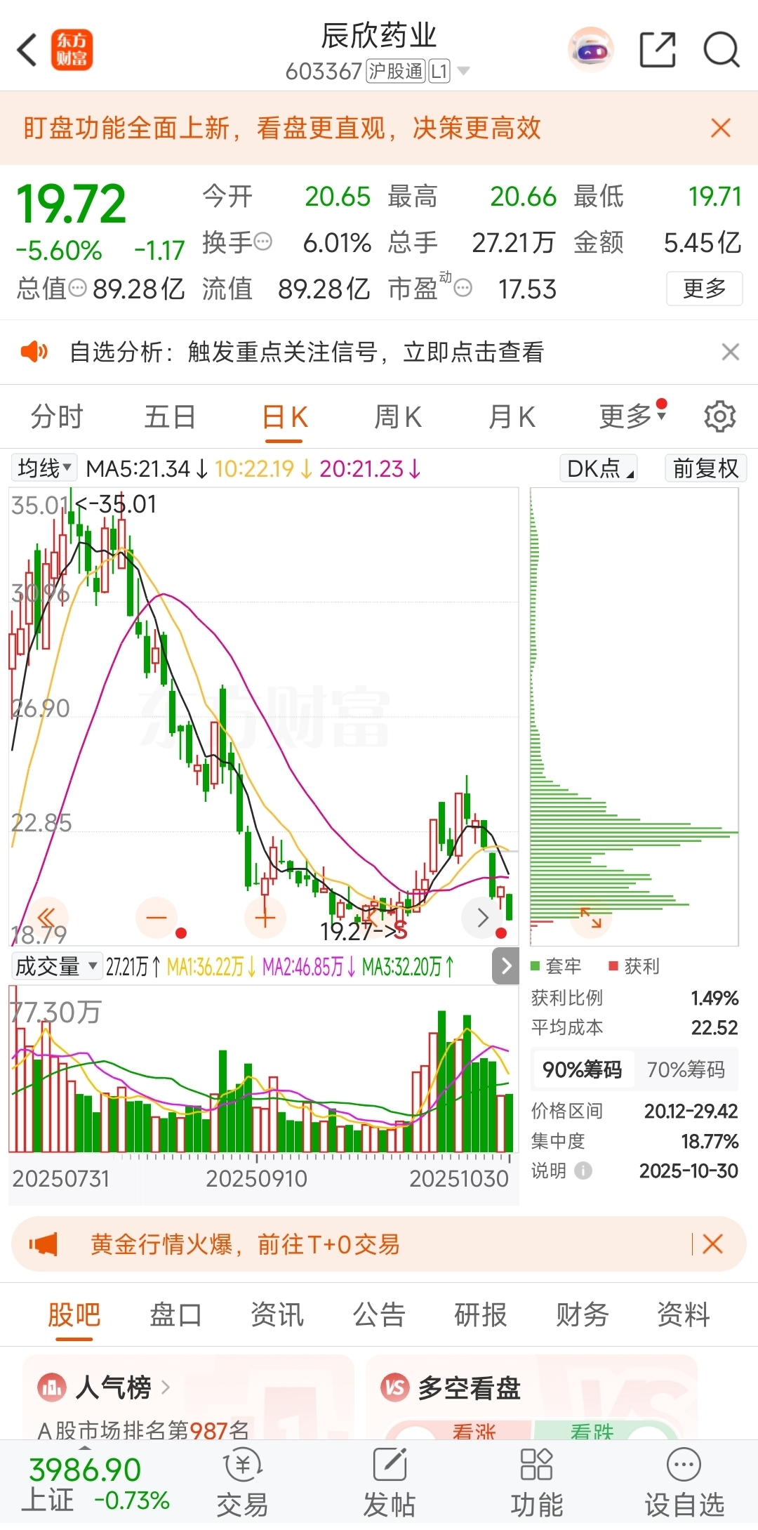 $辰欣药业(SH603367)$ 前面的套牢盘基本割肉了,应该快企稳了