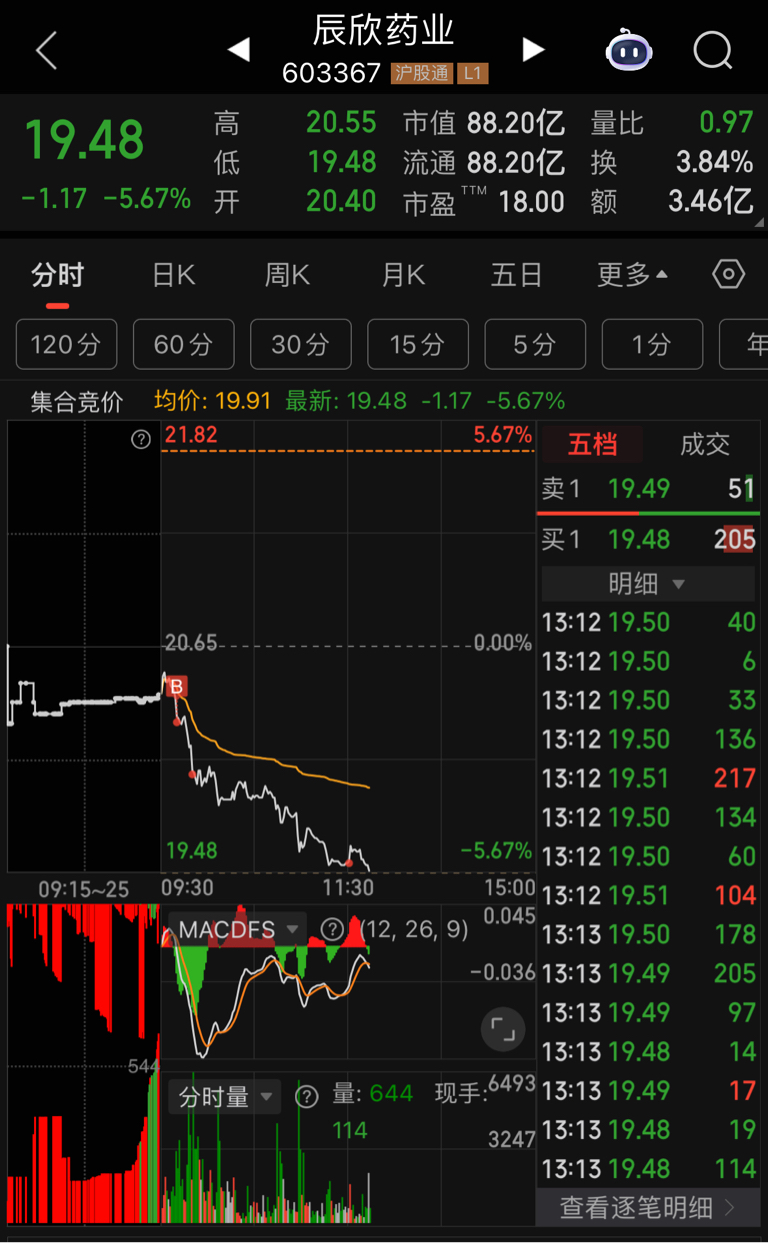 $辰欣药业(SH603367)$ 这么精准,每个买点都是下降前节点