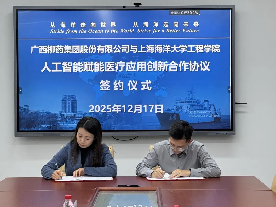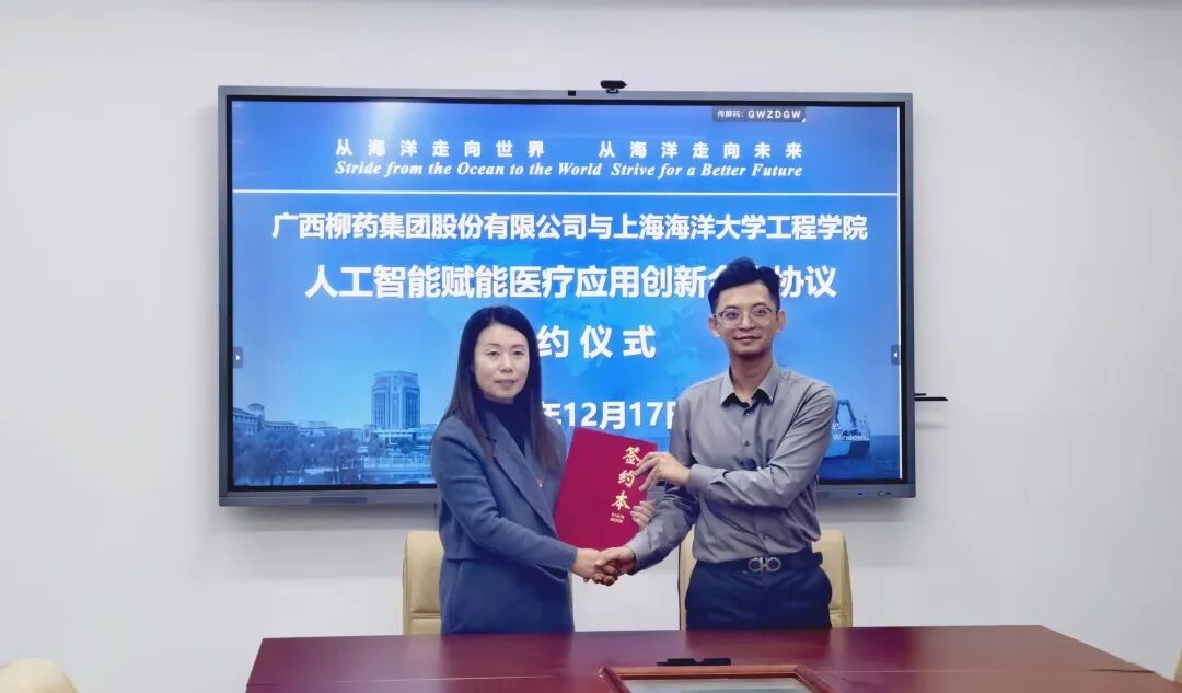 12月17日,柳药集团与上海海洋大学在上海举行签约仪式。上海海洋大学工程学院院长王芳、柳药集团董事会秘书徐扬出席签约仪式,并分别作为双方代表签署《人工智能赋能医疗应用创新合作协议》。本次合作旨在积极响应国家及广西人工智能发展政策,聚焦医疗医药领域大数据与AI人工智能应用,打造相关专业领域的AI研发应用团队,推动AI技术在企业各项业务中的有效融合与应用。