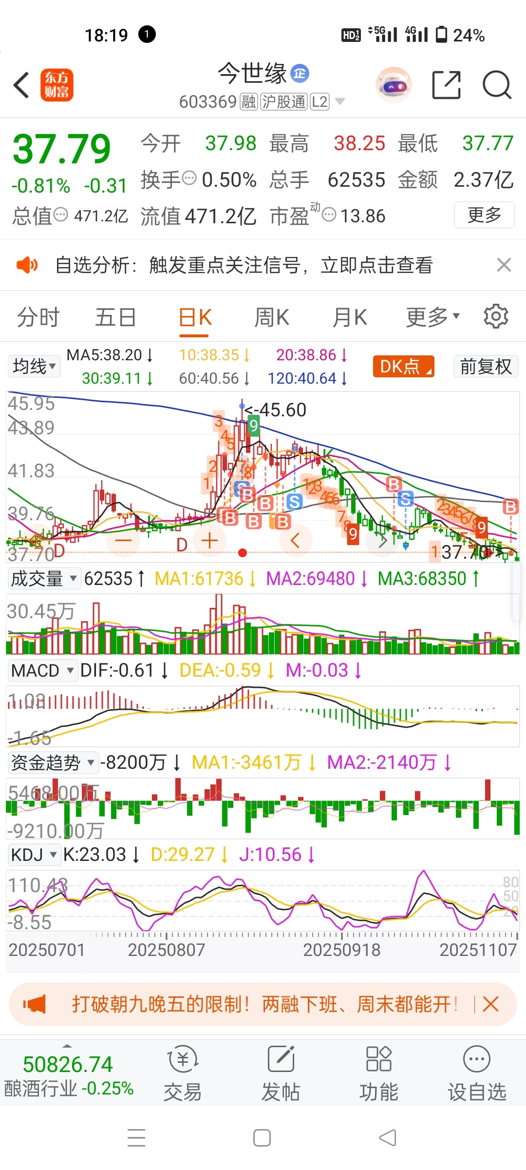 $今世缘(SH603369)$ 周一不跌的话,3770史诗级大底。
