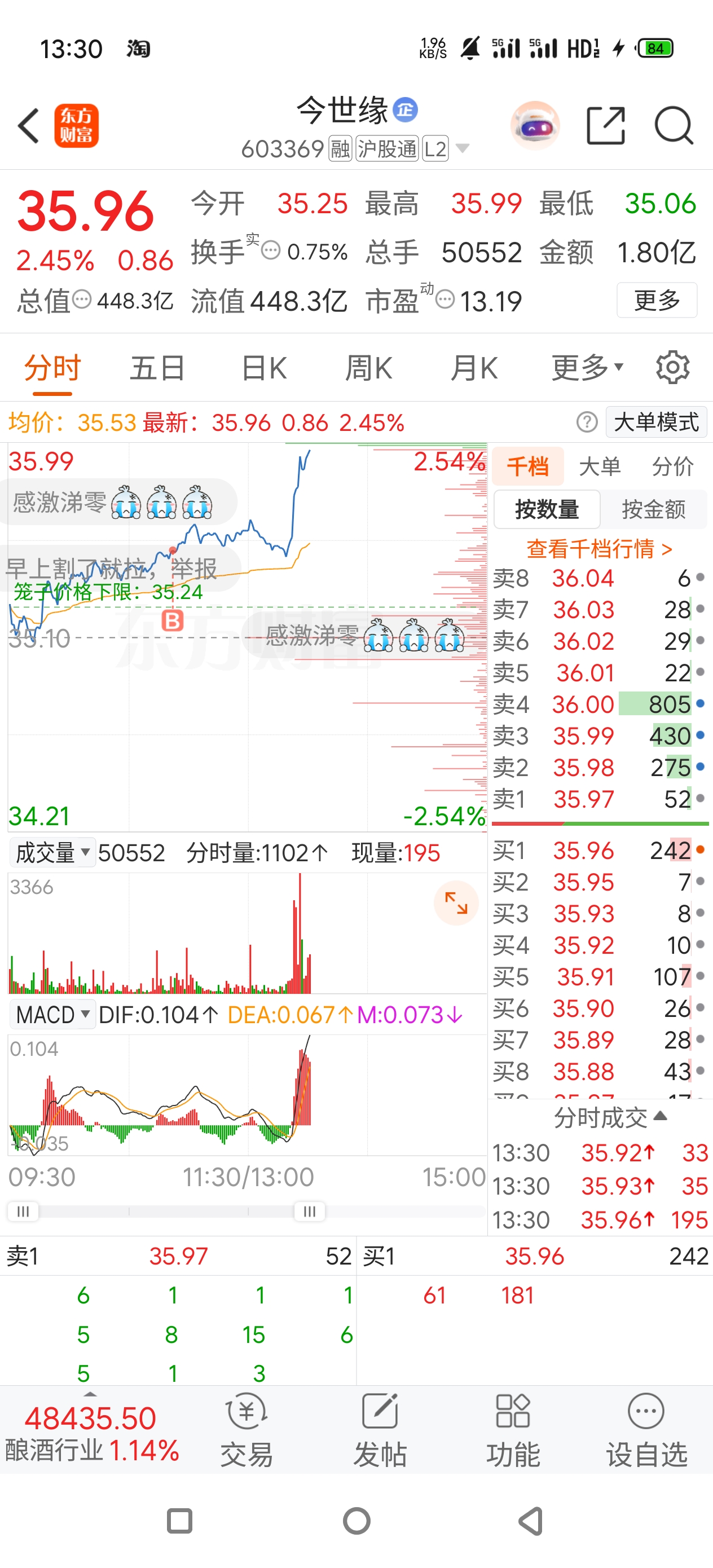 $今世缘(SH603369)$ 涨跌今天也卖不掉,进场价位稍微偏高,不过后面还是看涨