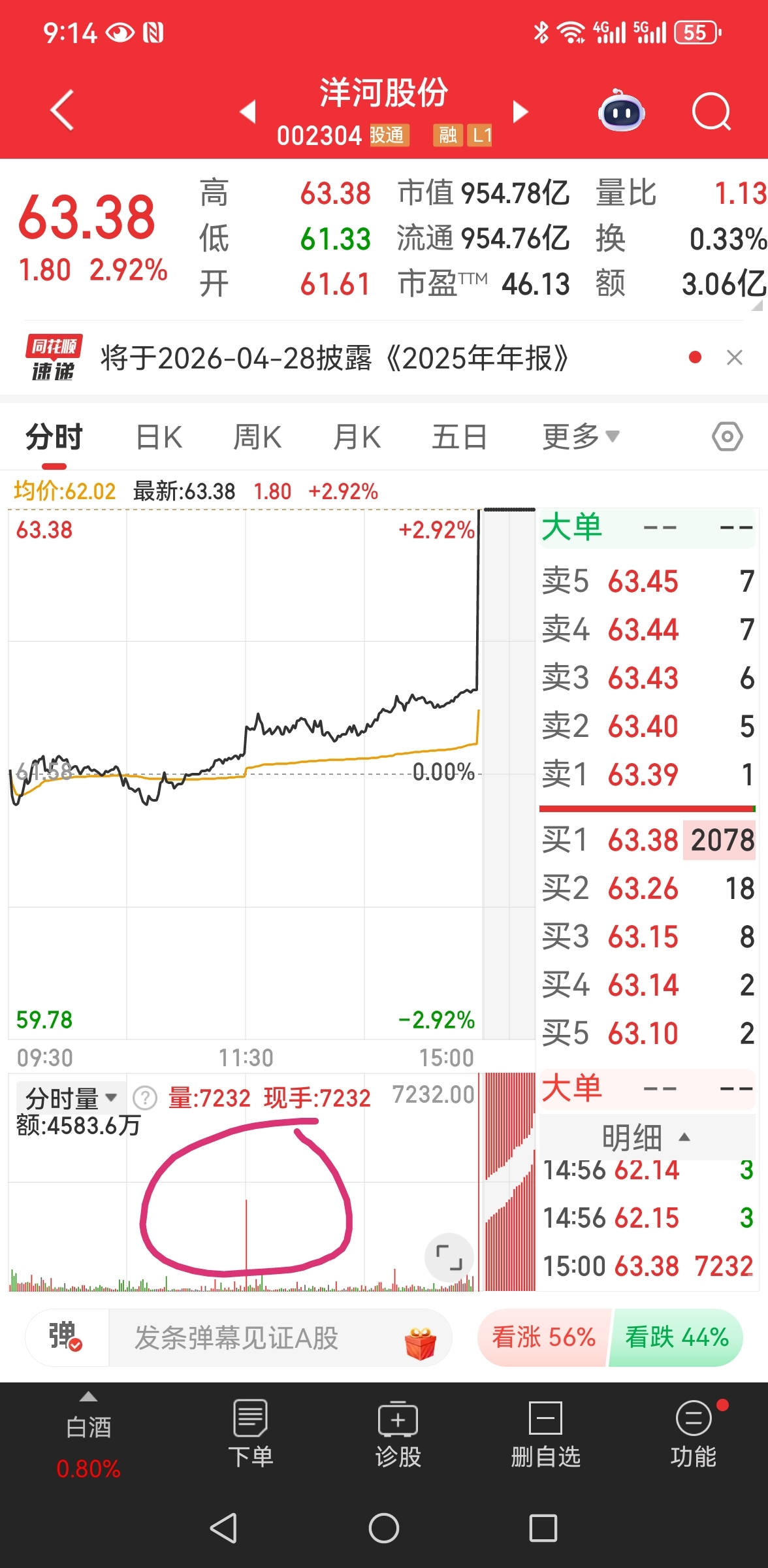 洋河股份有试盘动作