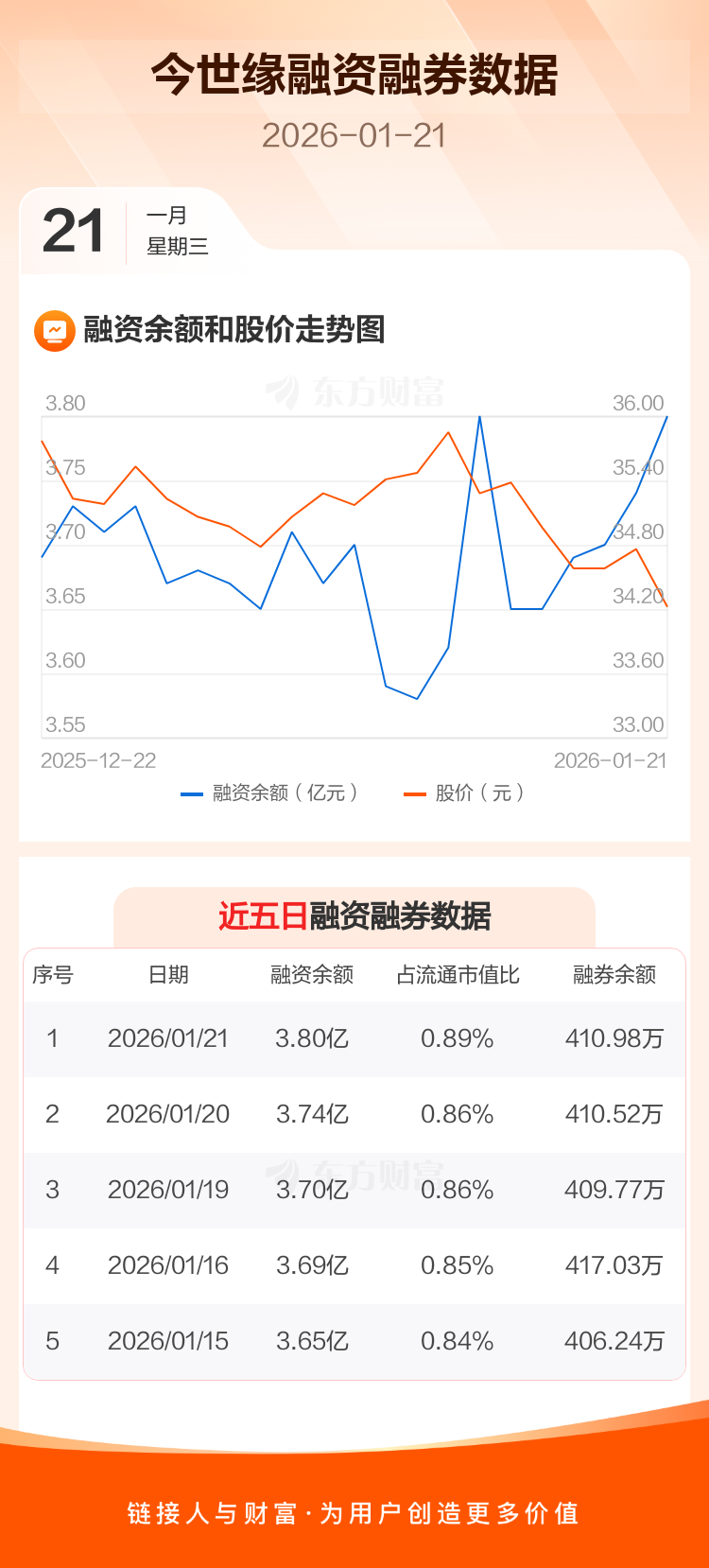 交易所最新数据显示,今世缘于2026年1月21日获融资买入1866.21万元,融资偿还1229.59万元,当日融资净买入636.62万元。目前,该股融资余额3.80亿,占流通市值比例为0.89%。