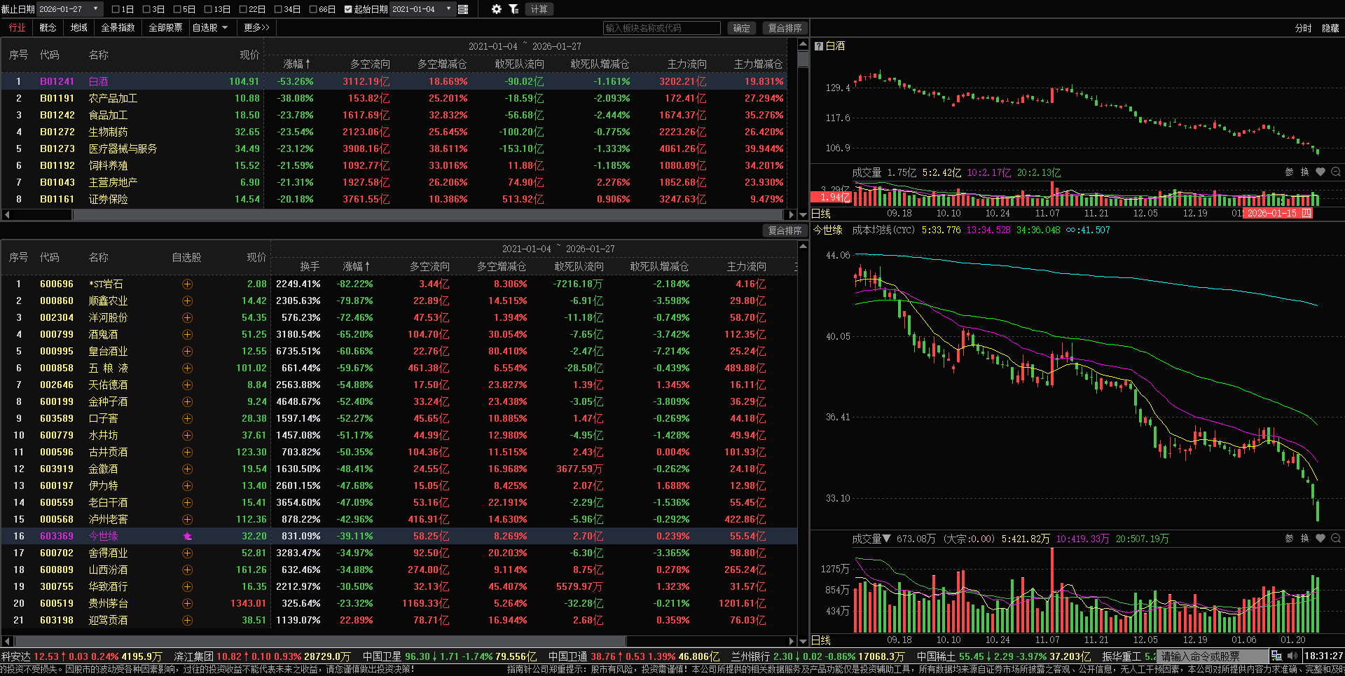 白酒板块今世缘5年跌幅还算可以了,都接近大宗交易成本线了。看看跌幅前10名跌幅吧