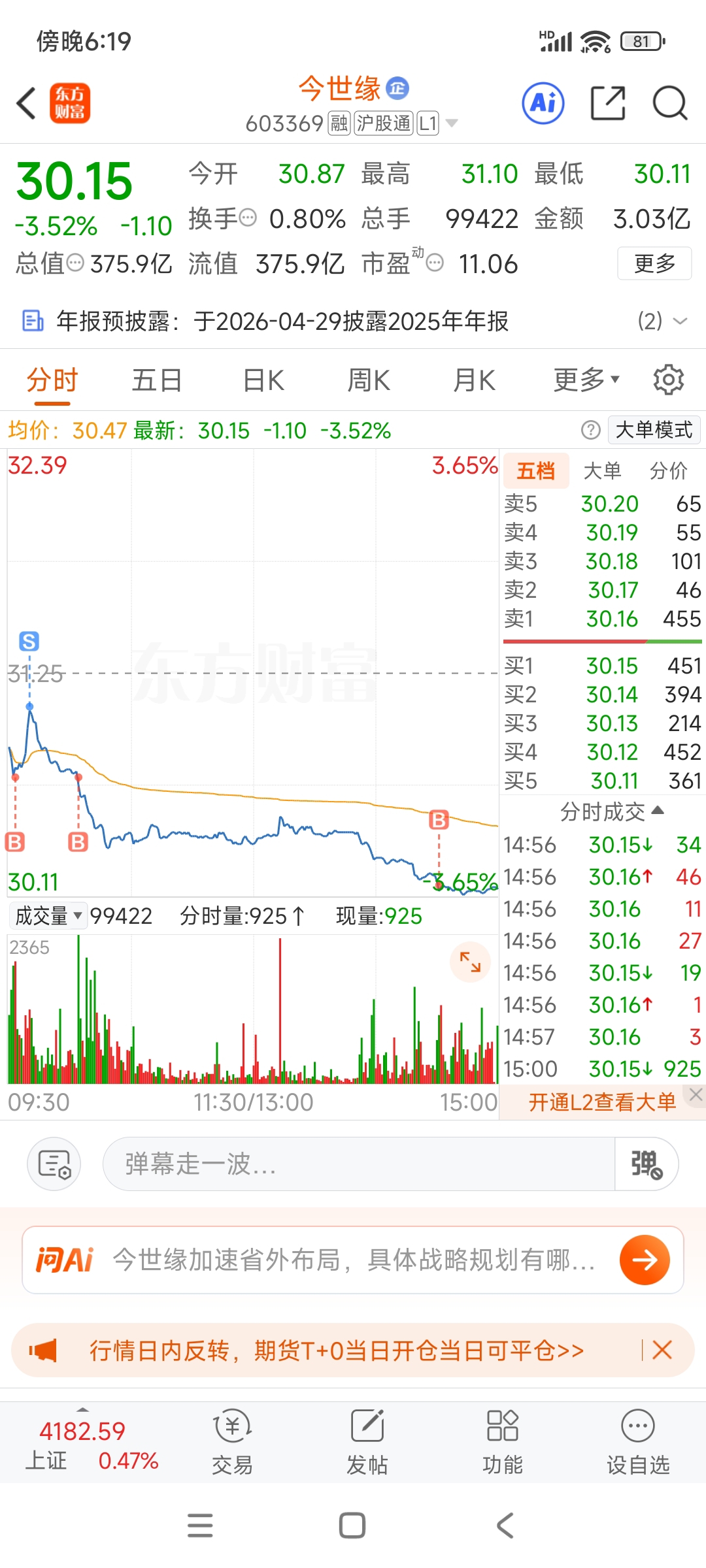$今世缘(SH603369)$ 今天把最后的子弹也打光了,彻底弹尽粮绝了,真是个无底洞啊,听天由命了,我命由庄不由我