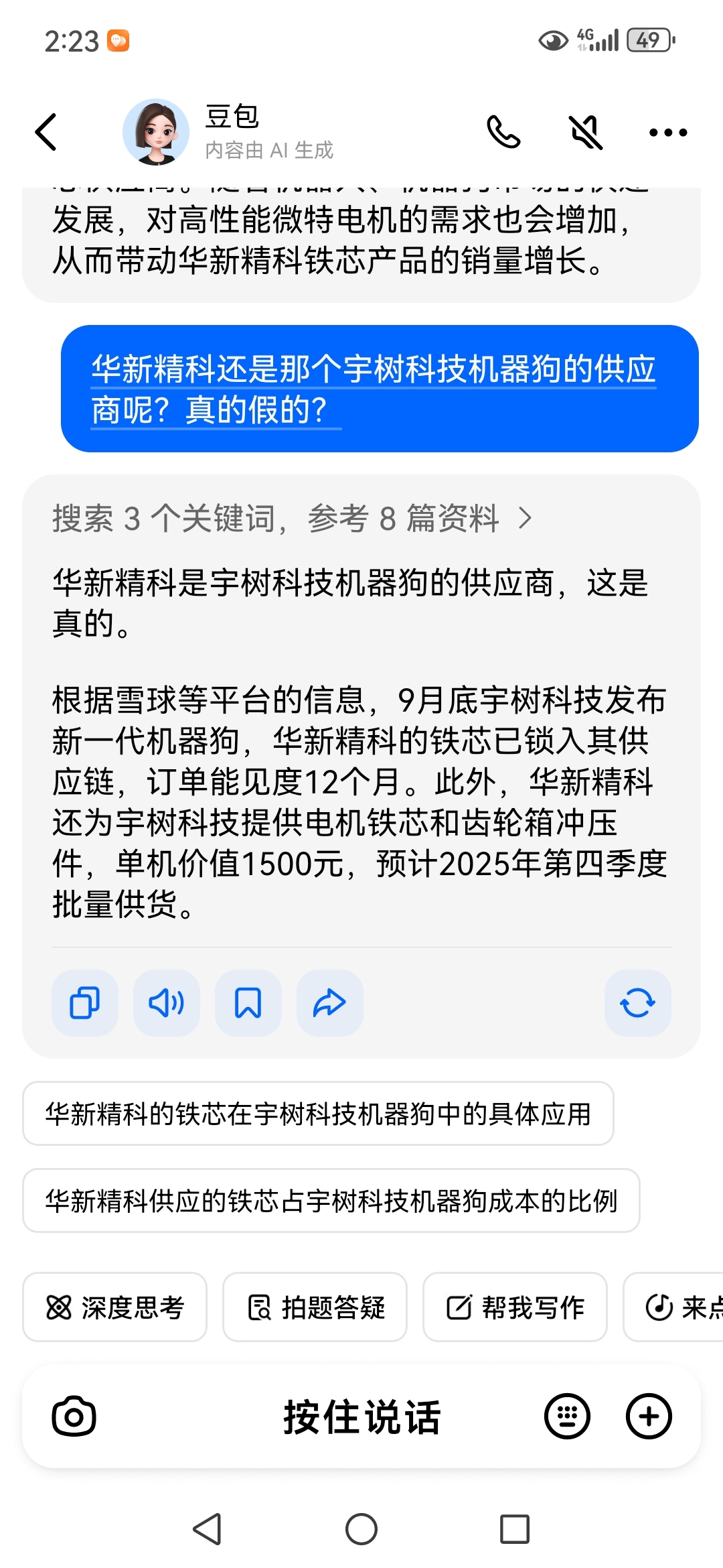 $华新精科(SH603370)$ 有知道这是真的还是假的,豆包回答的,