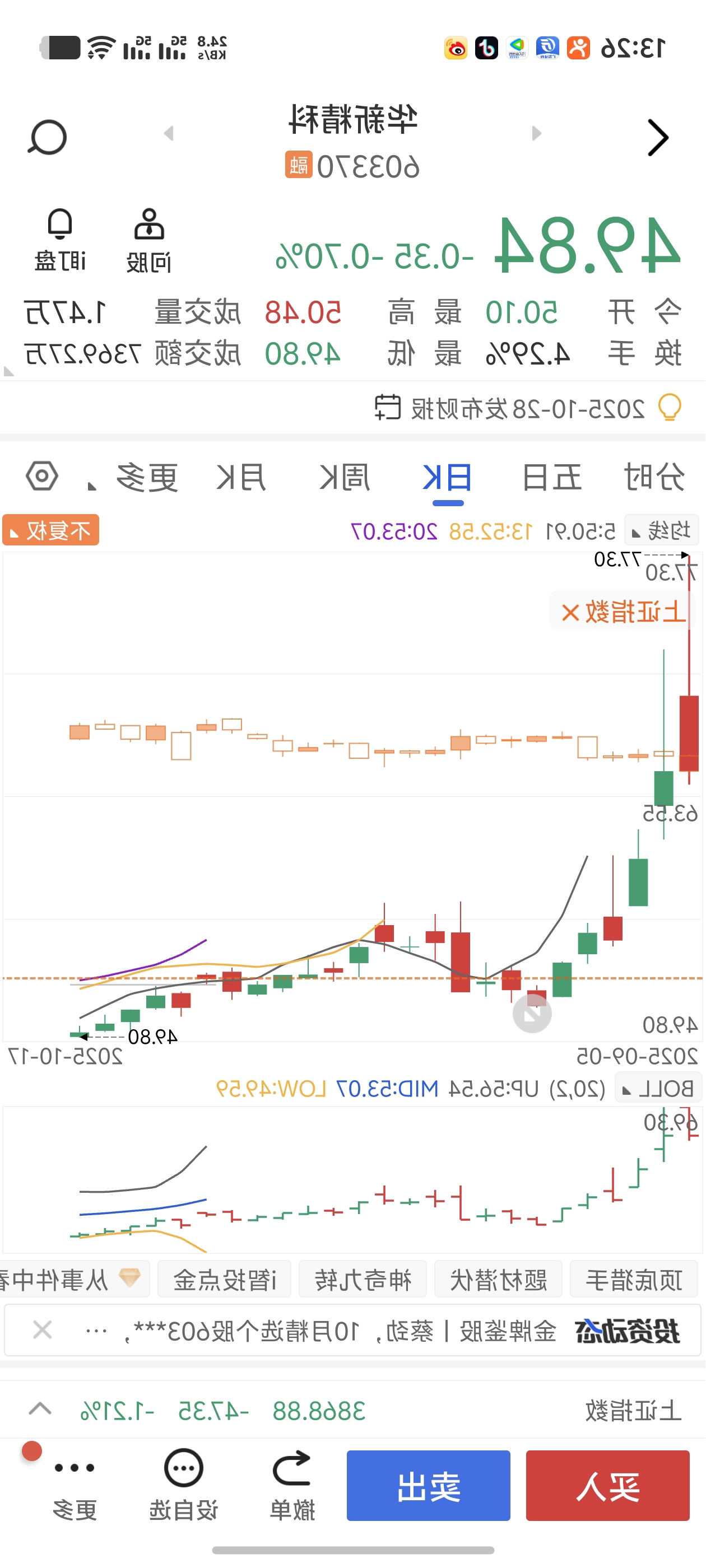 $华新精科(SH603370)$ 多好的股票,发挥稳定。自今天穿越到上市那一天然后卖出,开心不