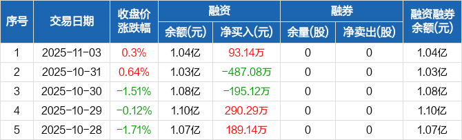 华新精科:融资净买入93.14万元,融资余额1.04亿元(11-03)
