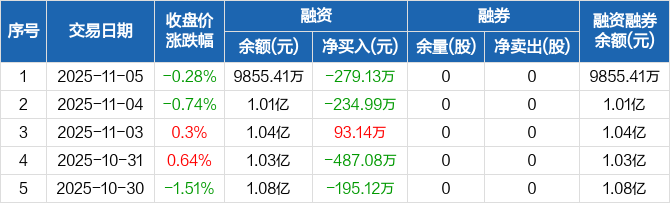华新精科:融资净偿还279.13万元,融资余额9855.41万元(11-05)