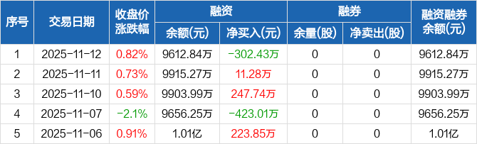 华新精科:融资净偿还302.43万元,融资余额9612.84万元(11-12)