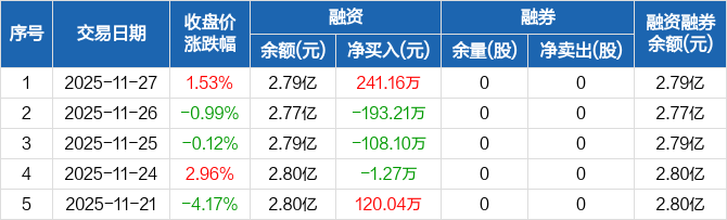 安邦护卫:融资净买入241.16万元,融资余额2.79亿元(11-27)