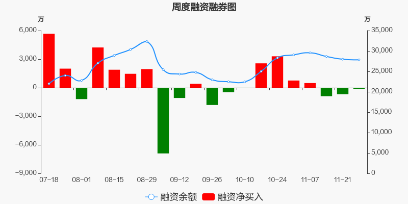 安邦护卫本周(2025/11/24-2025/11/28)累计涨幅达3.62%,截至11月28日最新股价报收42.64元。从增量上来看,11月24日至11月28日融资买入交易规模1519.79万元,融资偿还规模1668.24万元,期内融资净偿还148.45万元。从存量上来看,截止11月30日,安邦护卫融资融券余额2.78亿元,其中融资余额规模2.78亿元,融券余额规模0元。
