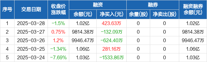 盛景微:融资净买入423.63万元,融资余额1.02亿元(03-28)
