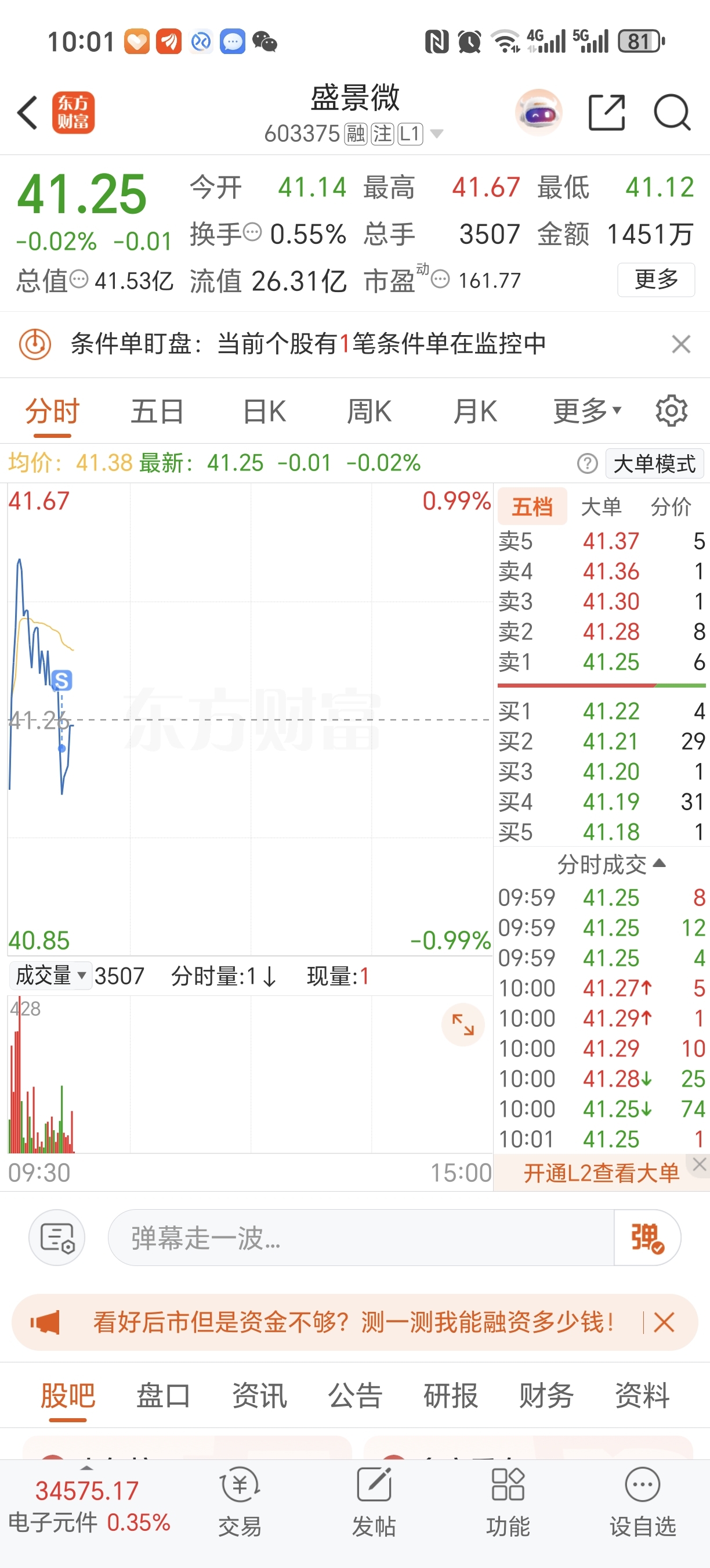 $盛景微(SH603375)$ 持有一周亏了一个点。