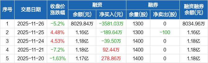 盛景微:融资净偿还3581.03万元,创历史新高(11-26)
