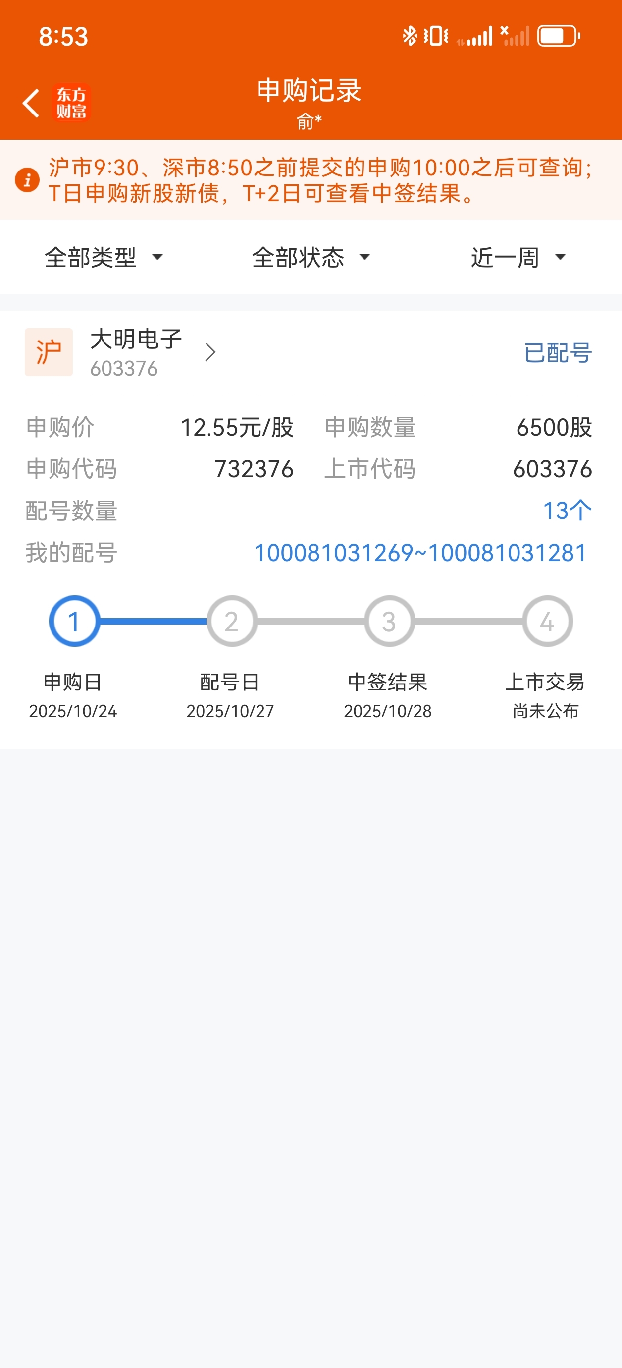 $大明电子(SH603376)$ 让我中一签吧,我是东财最忠实的用户,呼叫平台!打新到今天一次没中过。