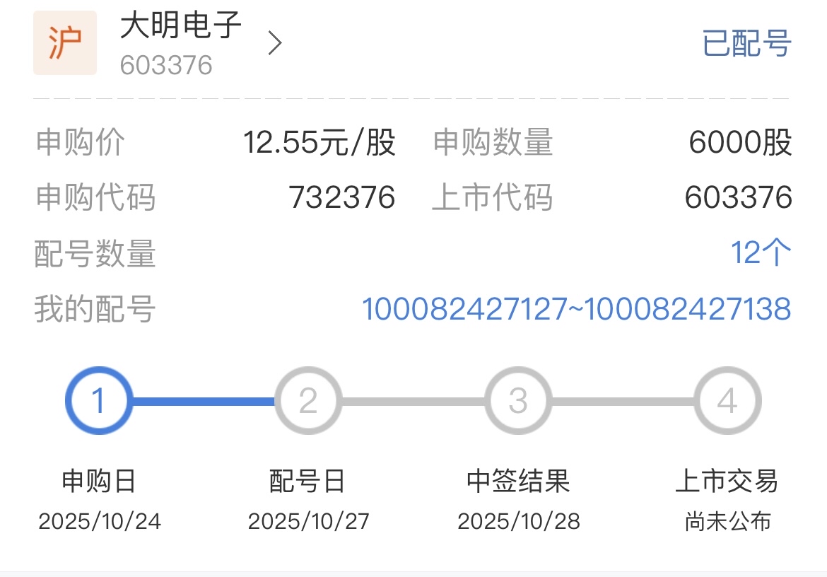 $大明电子(SH603376)$ 能中吗