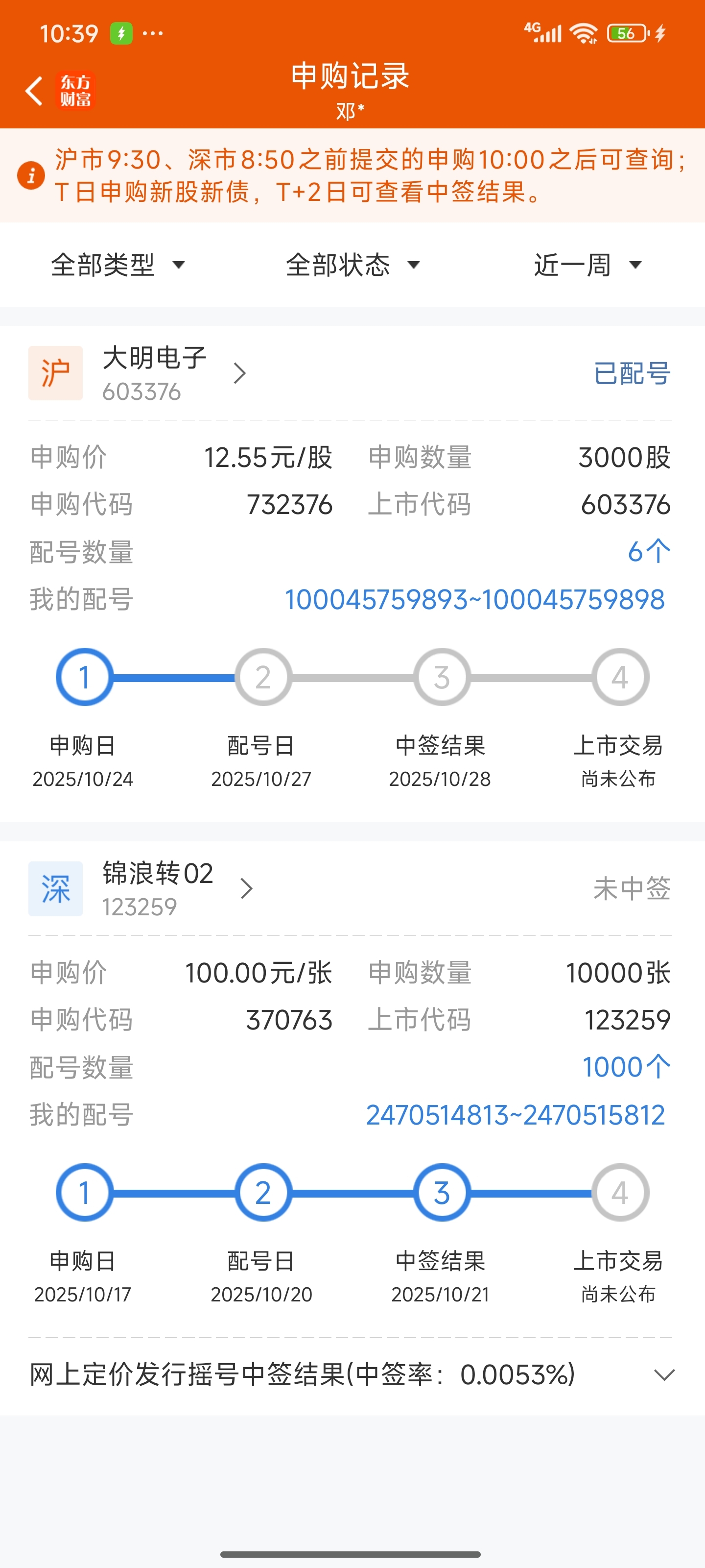 $大明电子(SH603376)$ 从来没有中过新股,能不能给我中一次,让我也体验一下中签的喜悦