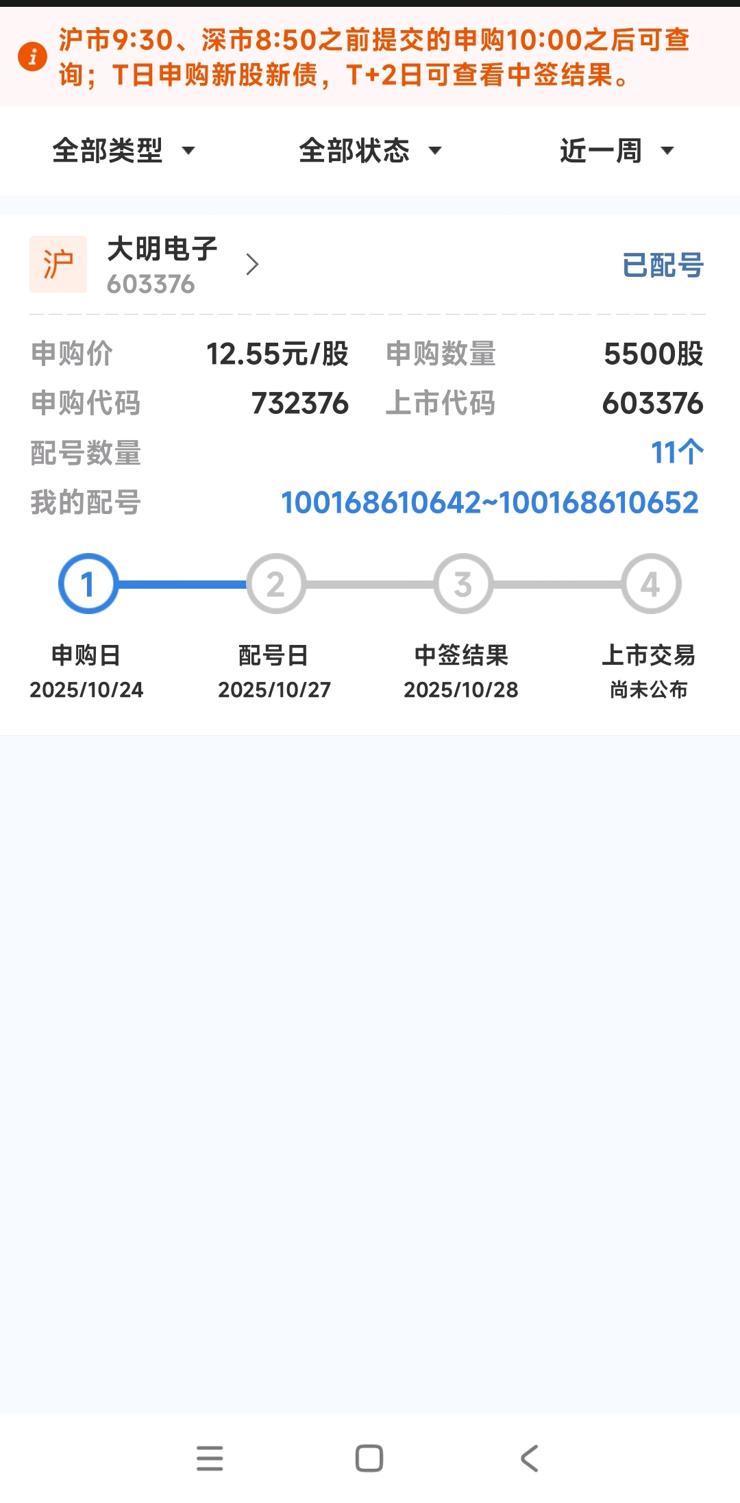 $大明电子(SH603376)$ 财神保佑中一签吧,让我回回血