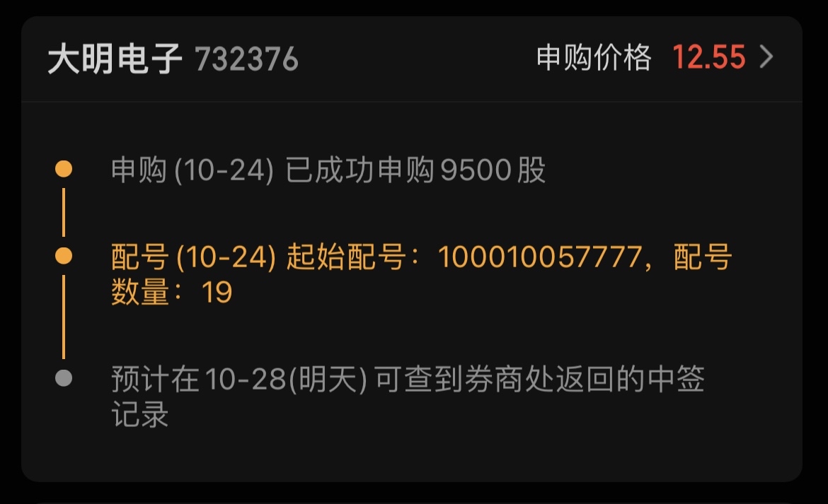 $大明电子(SH603376)$ 这配号是不是应该给我来一签呢?