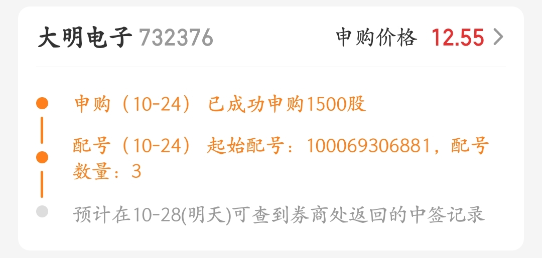 $大明电子(SH603376)$ 求求了,让我中一签吧