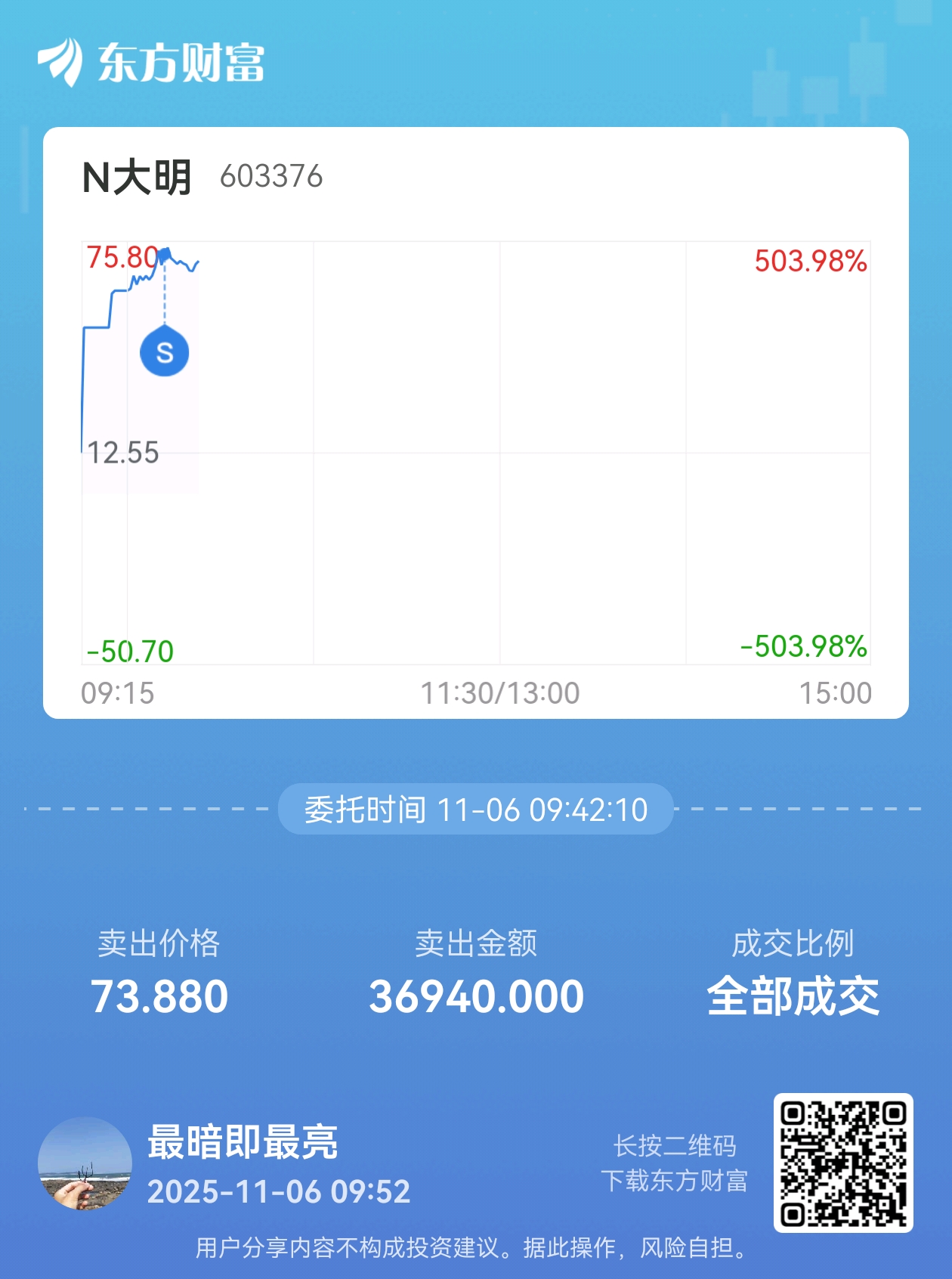 $N大明(SH603376)$ 第一次中签,感恩