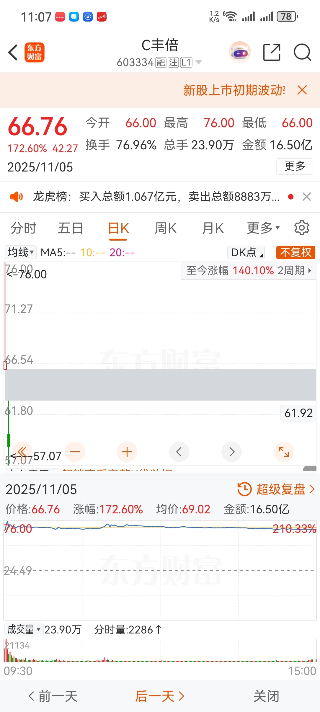 和昨天丰倍分时都一样,下午收盘60以下,明天低开10个点起步,今天买进的一个都别