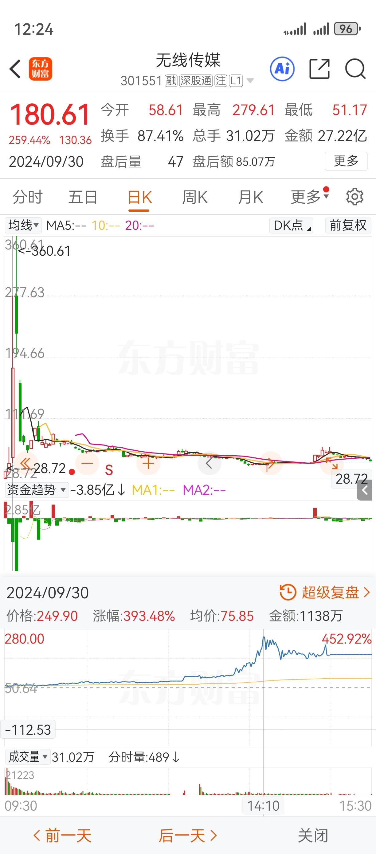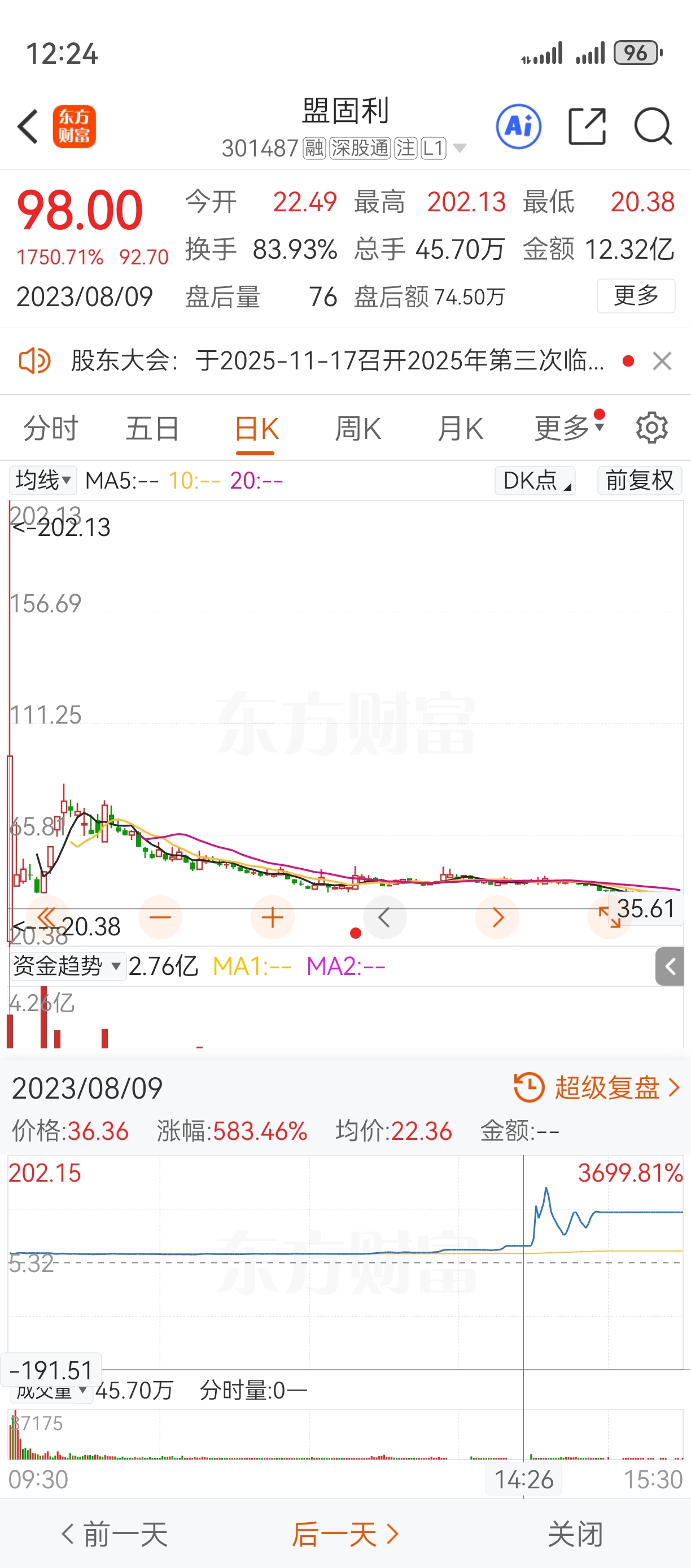 $N大明(SH603376)$ 目前来看下午拉暴涨的股,只有一个,就是之前的盟固利下午2点开始启动,涨幅超3600%,另外一个无限传媒第二天启动,第二日涨幅超300%,大明电子其实有这个条件,流通值才20亿,不足超颖首日上市的40亿,不及马可波罗的40亿。具体走向还得再看下午的成交量,但凡放量,交易果断介入。