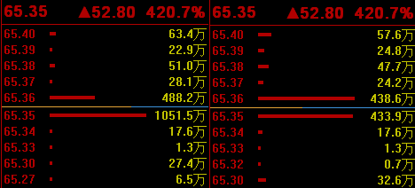 没买到看盘也有意思,65.36挂400万愣是不砸65.35的千万托单