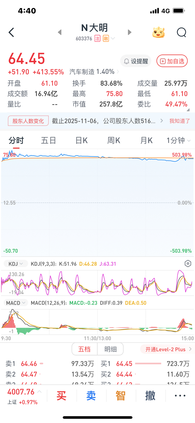 $N大明(SH603376)$ 新股第一天就涨400%,后4天最少跌40%以上。大A如果不好好整治新股发行和上市生态,就是一个收割韭菜市!