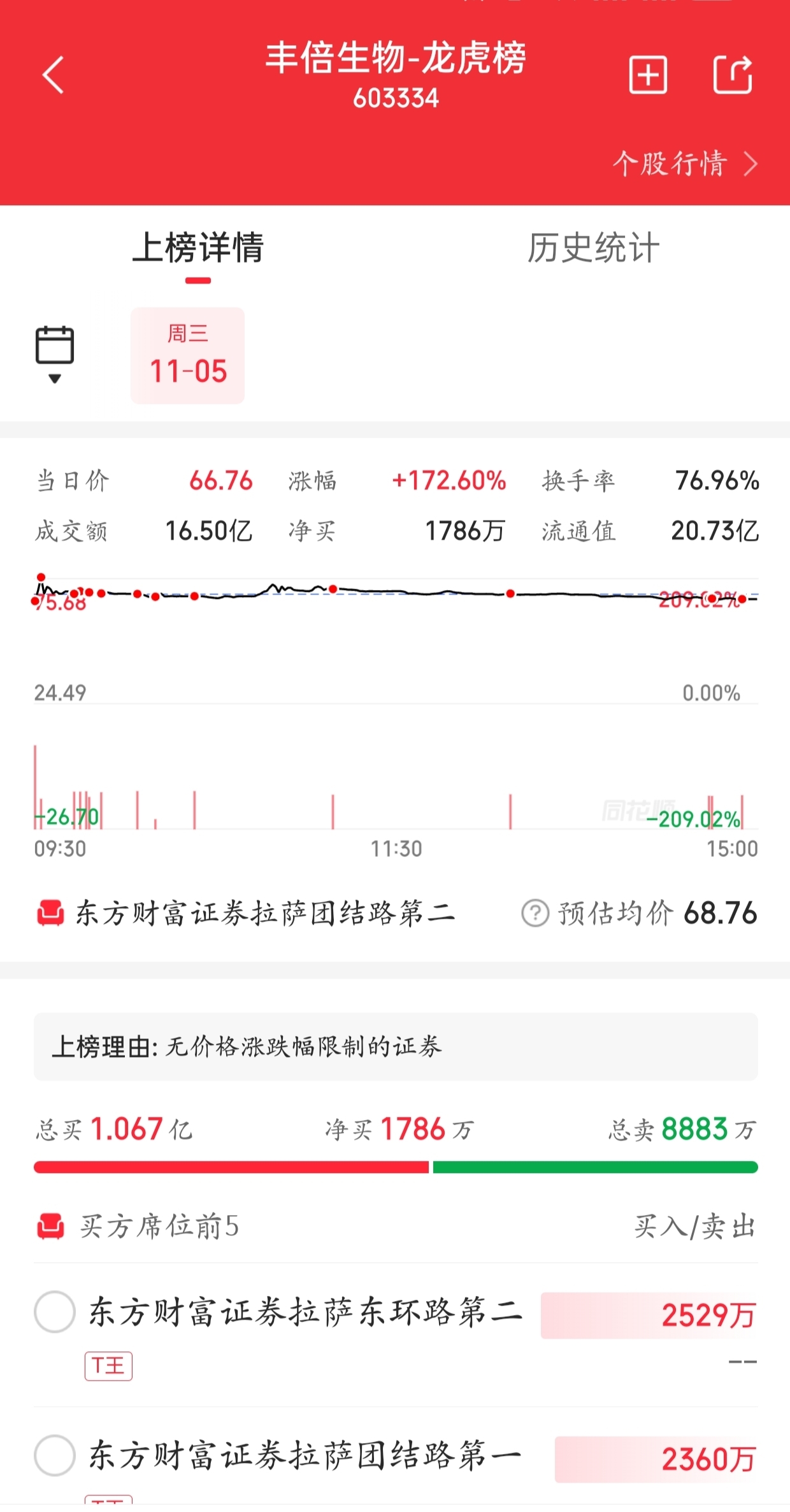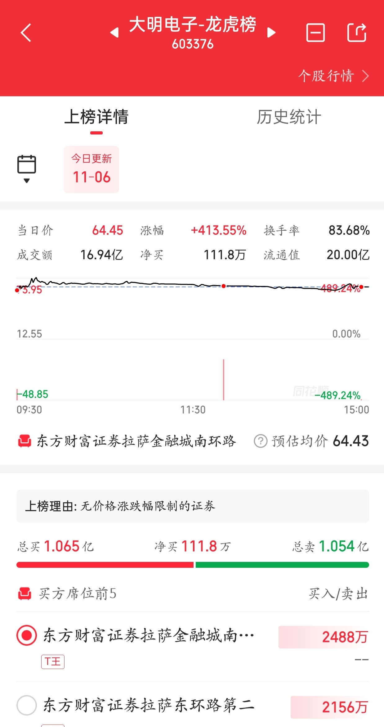 对比一下大明和昨天的丰倍龙虎榜,都是拉萨席位的买入点,但差别很大,大明的三个拉萨