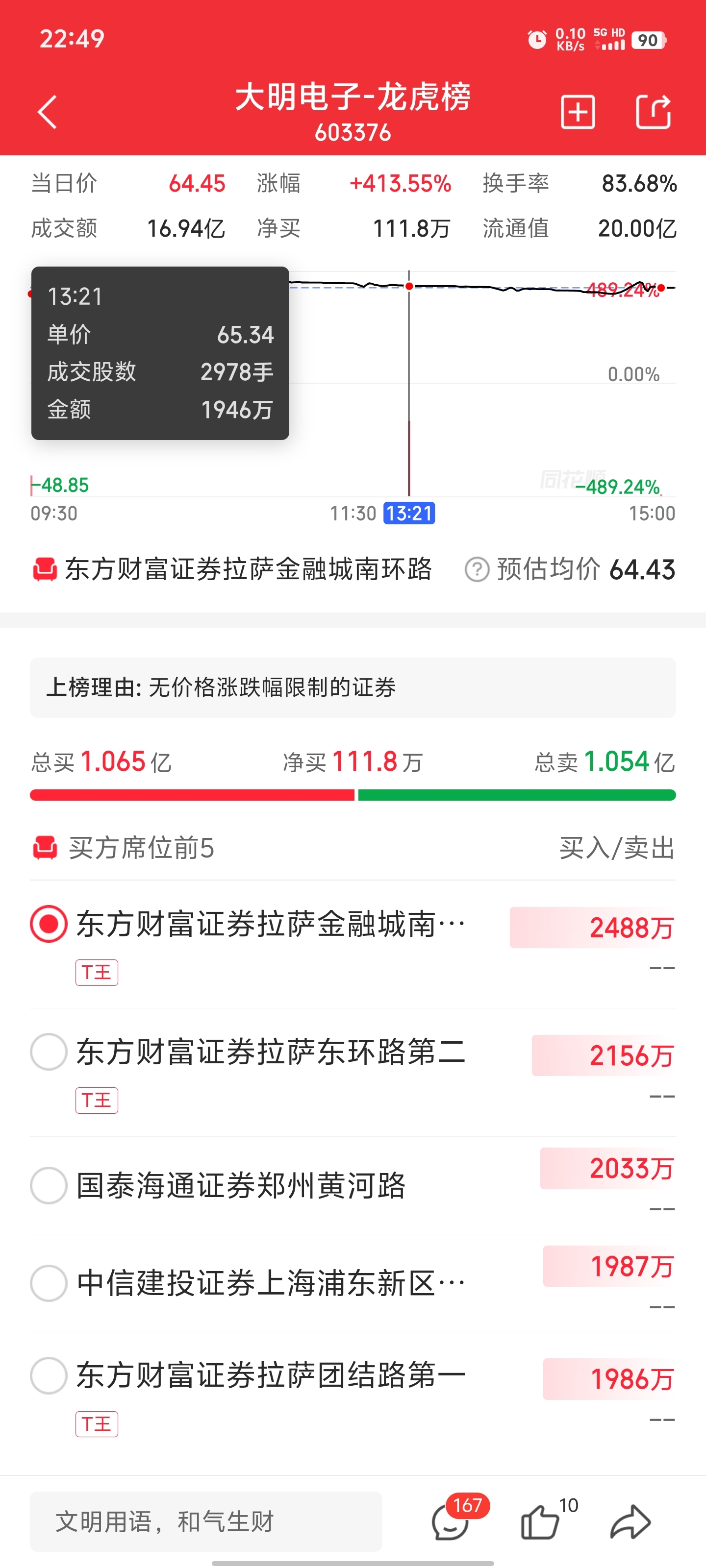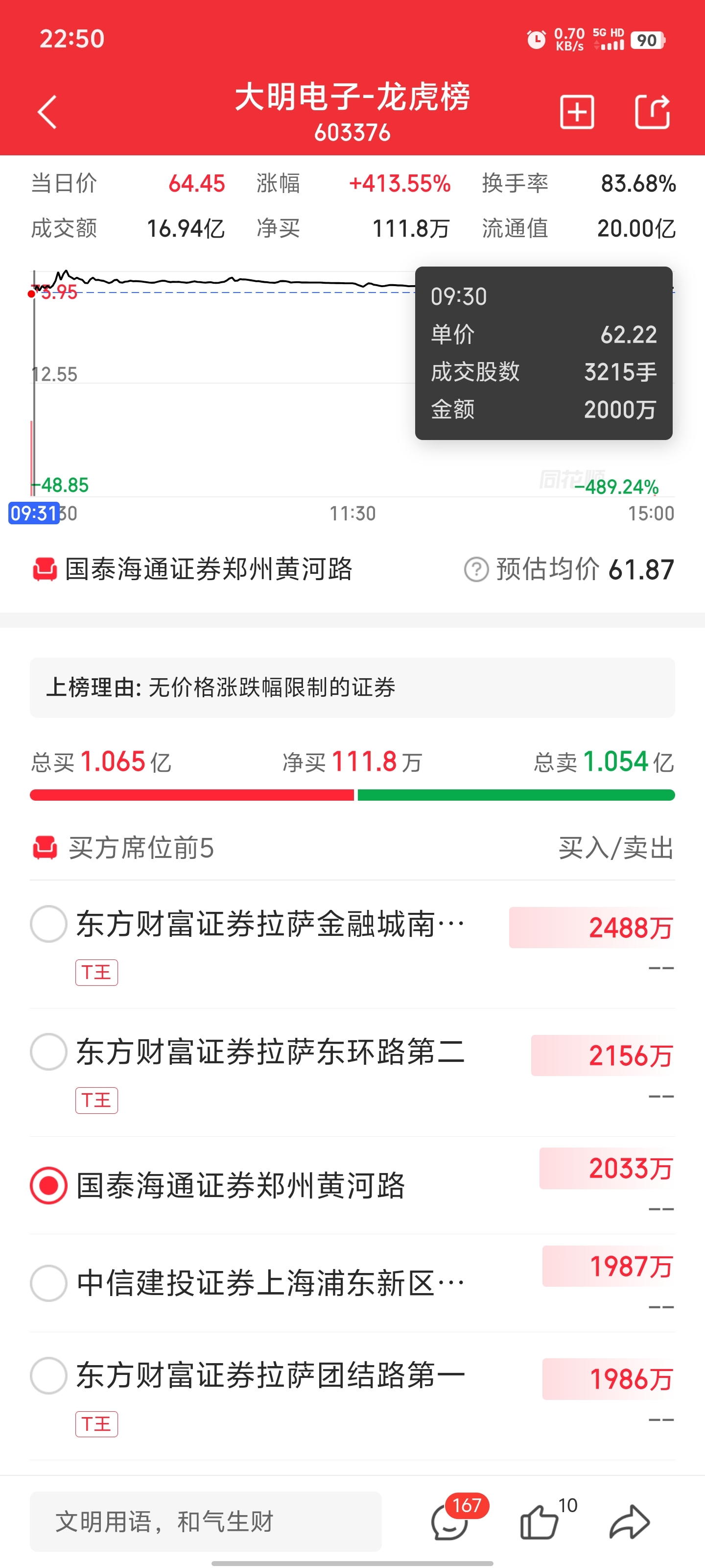温馨提示: 1.根据《证券法》规定,禁止编造、传播虚假信息或者误导性信息,扰乱证券市场;2.用户在本社区发表的所有资料、言论等仅代表个人观点,与本网站立场无关,不对您构成任何投资建议。用户应基于自己的独立判断,自行决定证券投资并承担相应风险。《东方财富社区管理规定》