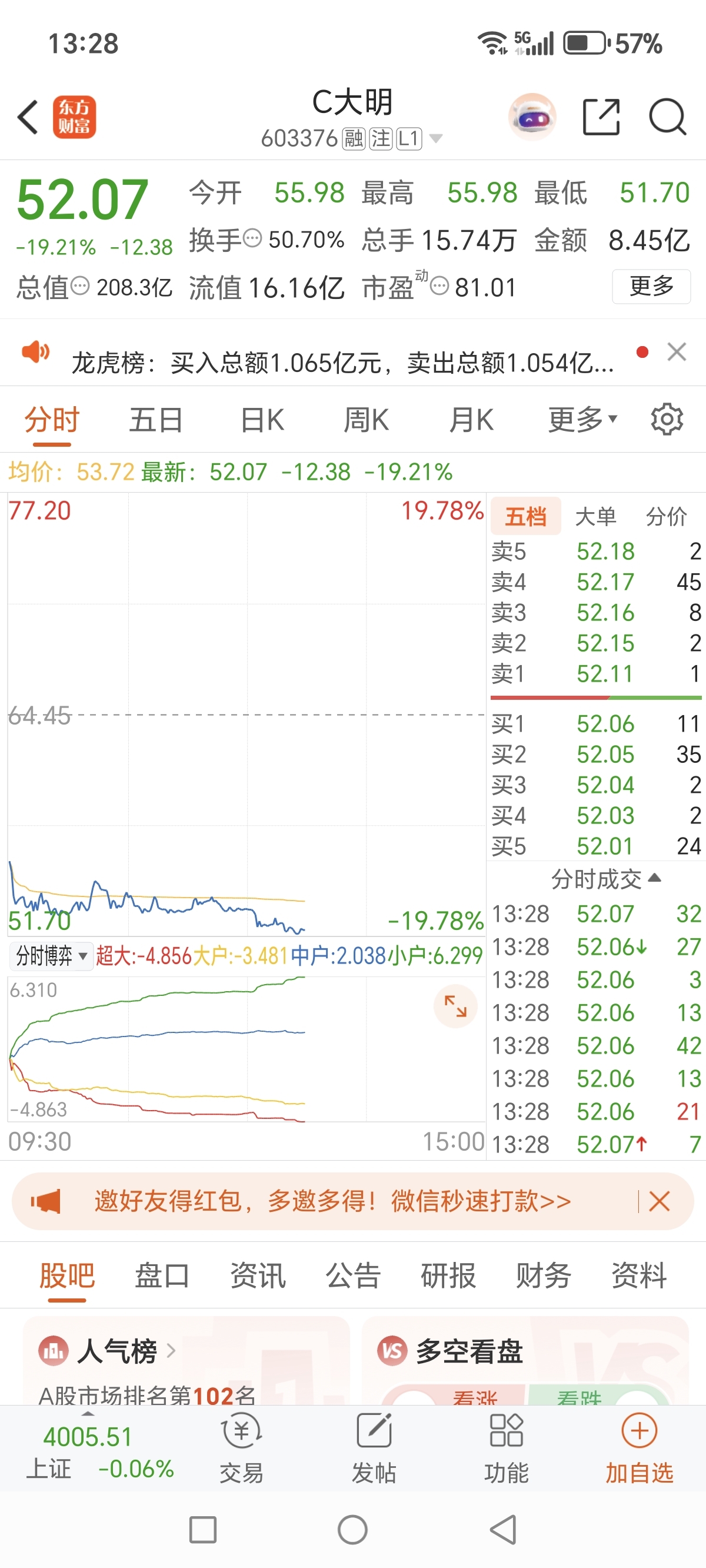$C大明(SH603376)$ $上证指数(SH000001)$ 我朋友想抄底,他问我能抄底了嘛?我该怎么回复他?