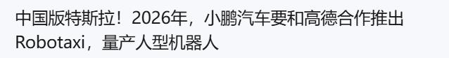 大明:看点是智能驾驶,对标德赛西威(智驾刚推出人形机器人智能基座)。小鹏官宣进军ROBOTAXI无人驾驶出租,推出人形机器人,实际就是要对标特斯拉。