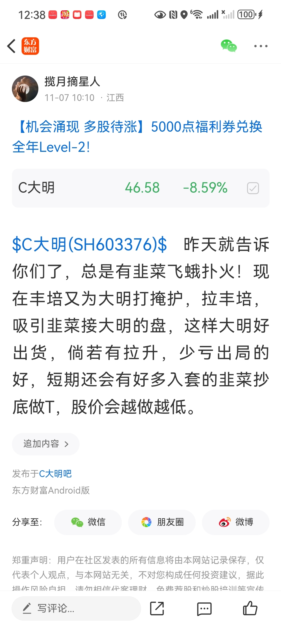温馨提示: 1.根据《证券法》规定,禁止编造、传播虚假信息或者误导性信息,扰乱证券市场;2.用户在本社区发表的所有资料、言论等仅代表个人观点,与本网站立场无关,不对您构成任何投资建议。用户应基于自己的独立判断,自行决定证券投资并承担相应风险。《东方财富社区管理规定》