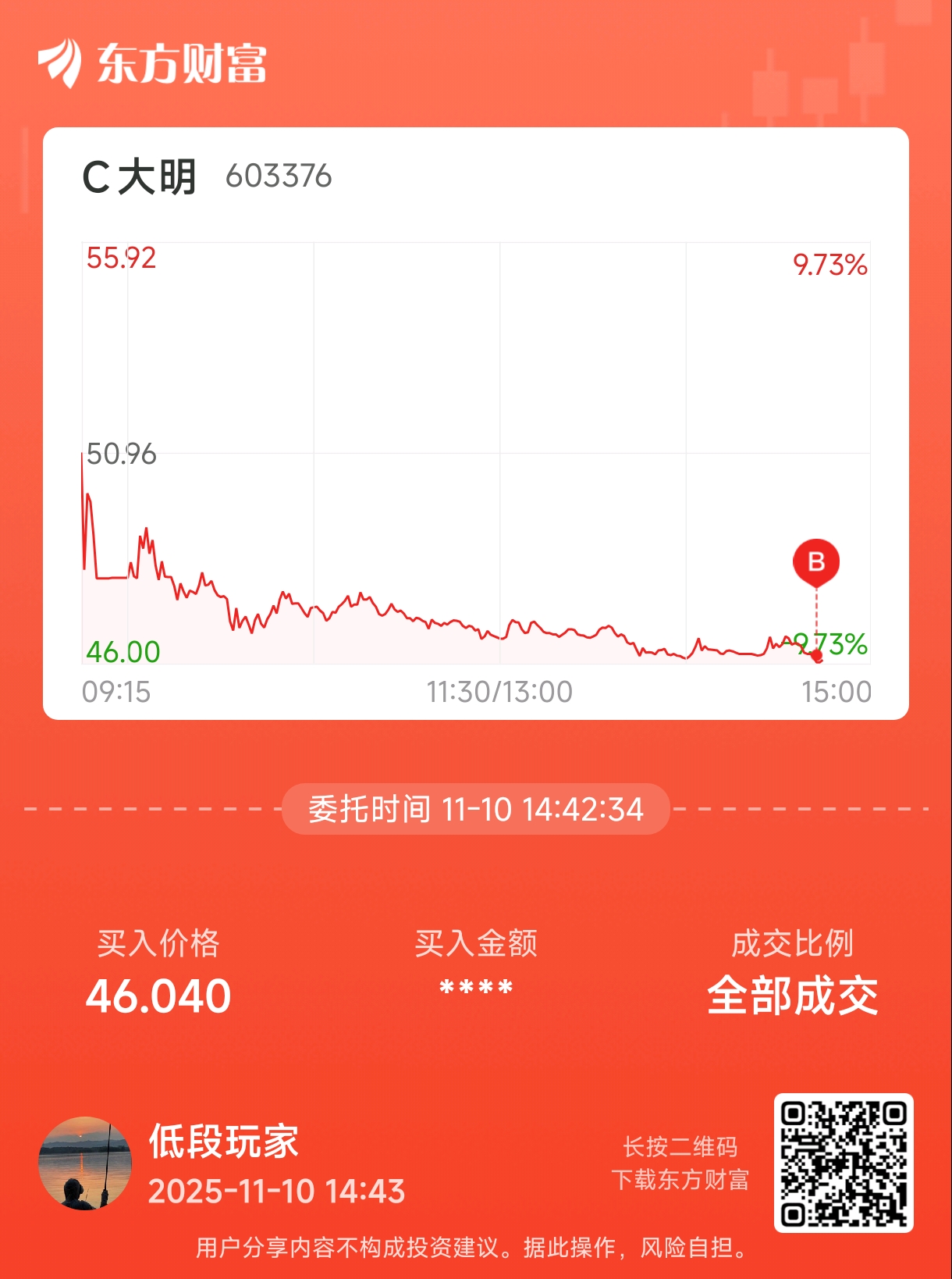 温馨提示: 1.根据《证券法》规定,禁止编造、传播虚假信息或者误导性信息,扰乱证券市场;2.用户在本社区发表的所有资料、言论等仅代表个人观点,与本网站立场无关,不对您构成任何投资建议。用户应基于自己的独立判断,自行决定证券投资并承担相应风险。《东方财富社区管理规定》