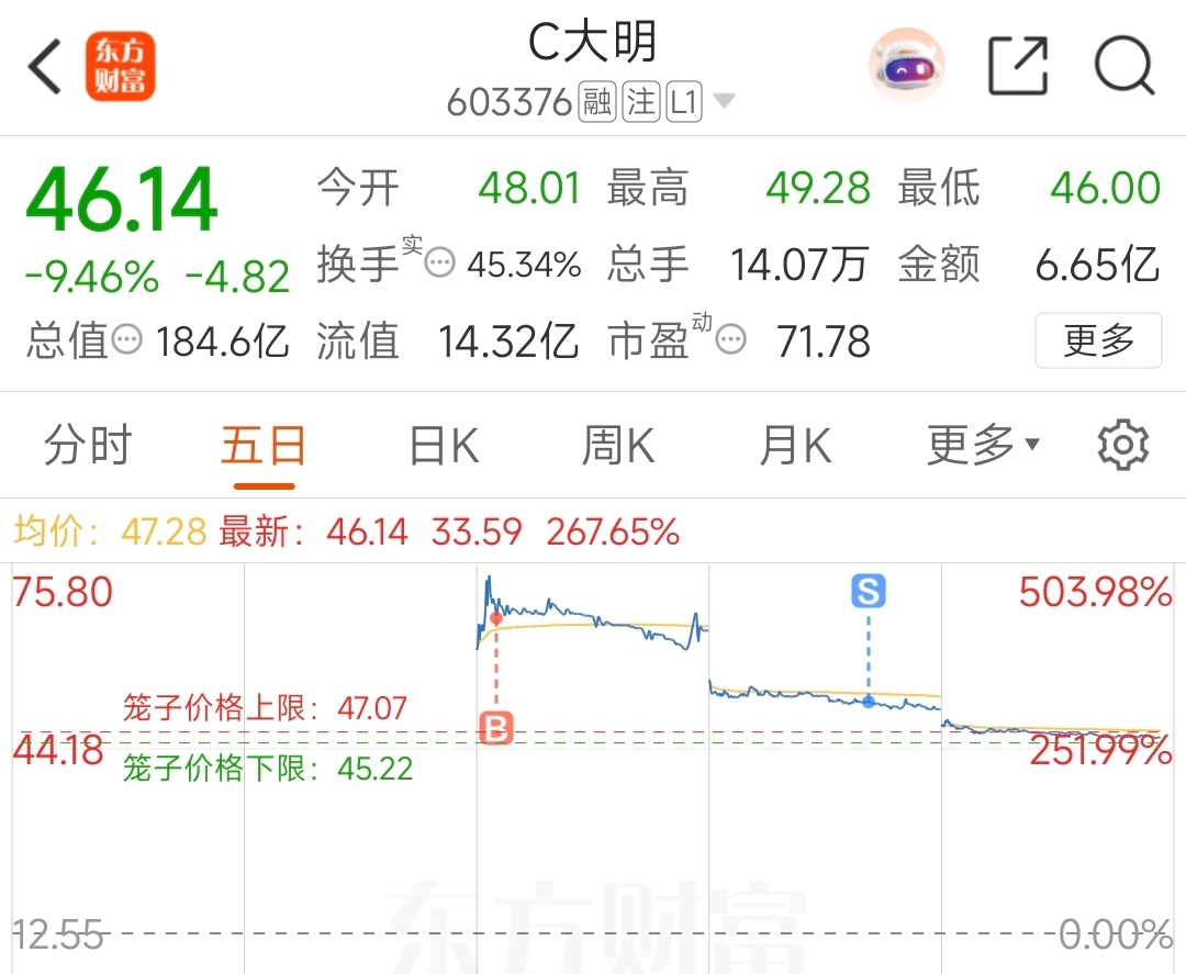 $C大明(SH603376)$ 65买的,50割肉走了,去了德力佳,69进的,76走了,还亏一半。明天早盘水下进大明