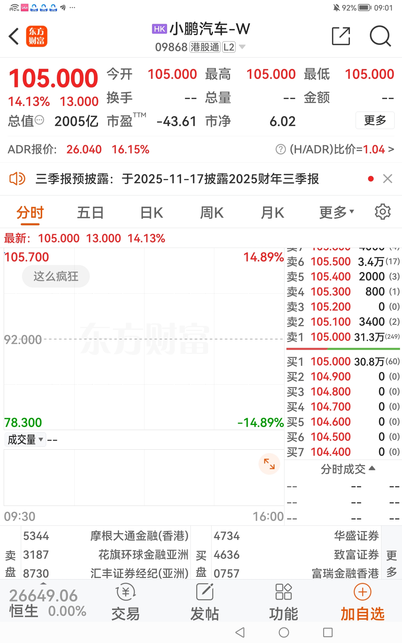 2000亿美元的小鹏汽车大张10多个点,大明是他合作,不设涨跌幅,真有可能临停,