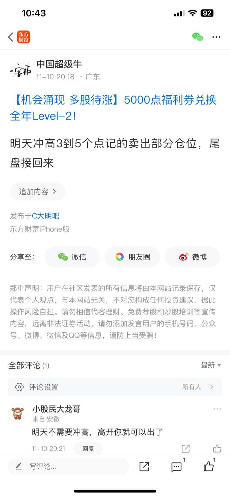 温馨提示: 1.根据《证券法》规定,禁止编造、传播虚假信息或者误导性信息,扰乱证券市场;2.用户在本社区发表的所有资料、言论等仅代表个人观点,与本网站立场无关,不对您构成任何投资建议。用户应基于自己的独立判断,自行决定证券投资并承担相应风险。《东方财富社区管理规定》