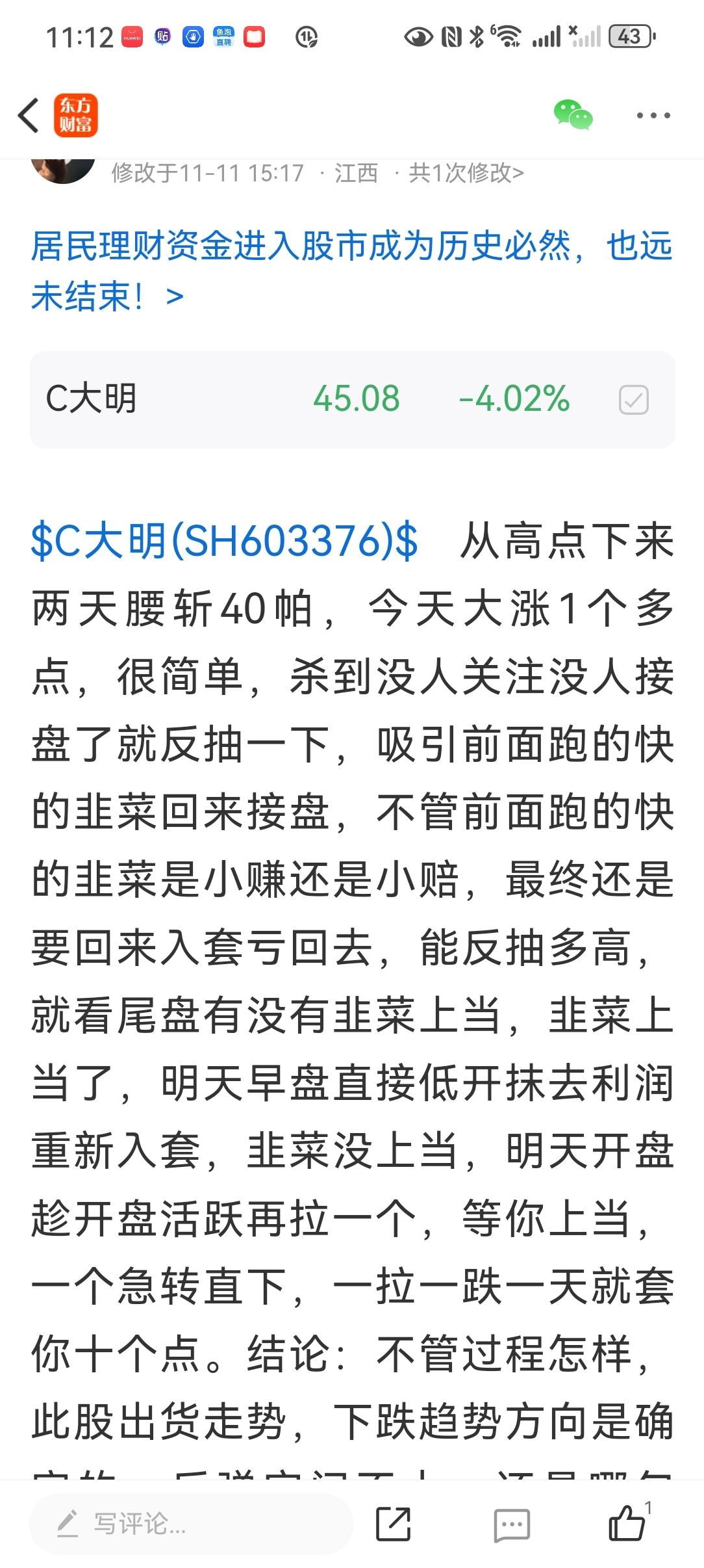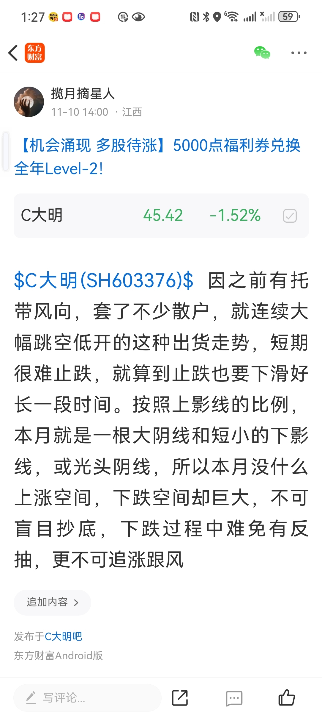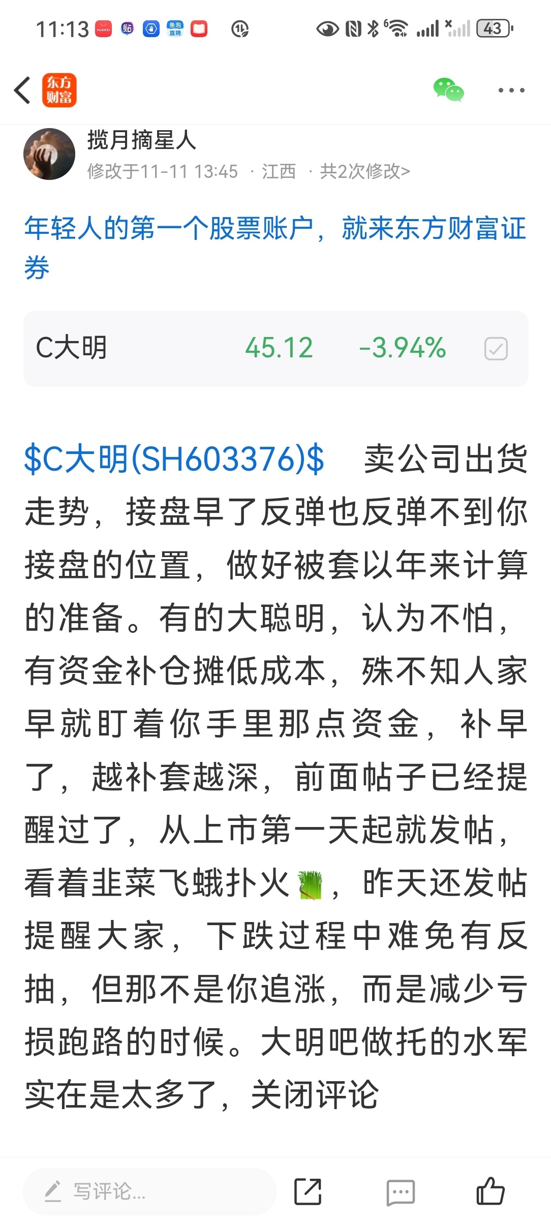 温馨提示: 1.根据《证券法》规定,禁止编造、传播虚假信息或者误导性信息,扰乱证券市场;2.用户在本社区发表的所有资料、言论等仅代表个人观点,与本网站立场无关,不对您构成任何投资建议。用户应基于自己的独立判断,自行决定证券投资并承担相应风险。《东方财富社区管理规定》