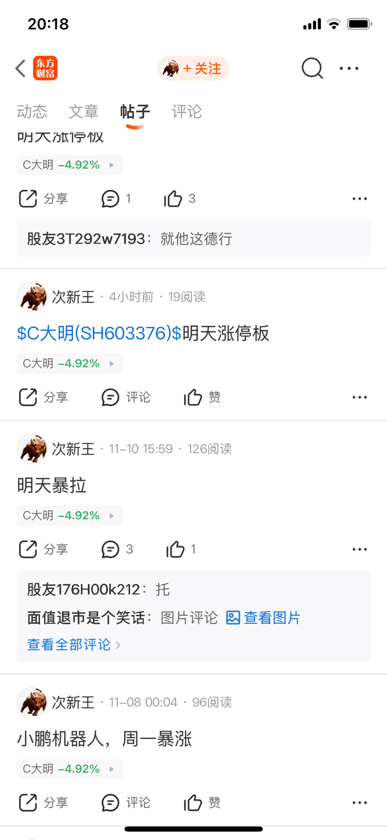 $C大明(SH603376)$ 这几个托不消停,说明没跌到位
