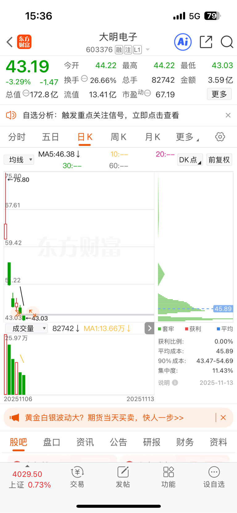 $大明电子(SH603376)$ 再来个缩量就差不多了!