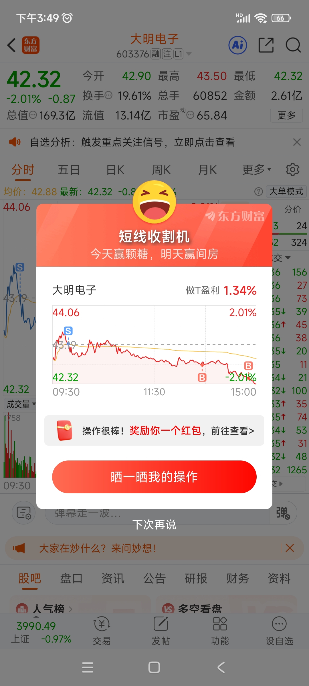 $大明电子(SH603376)$ 兄弟们,星尘踢了GOU庄的屁股,你们开心不?43.22成本,周一给解套不?