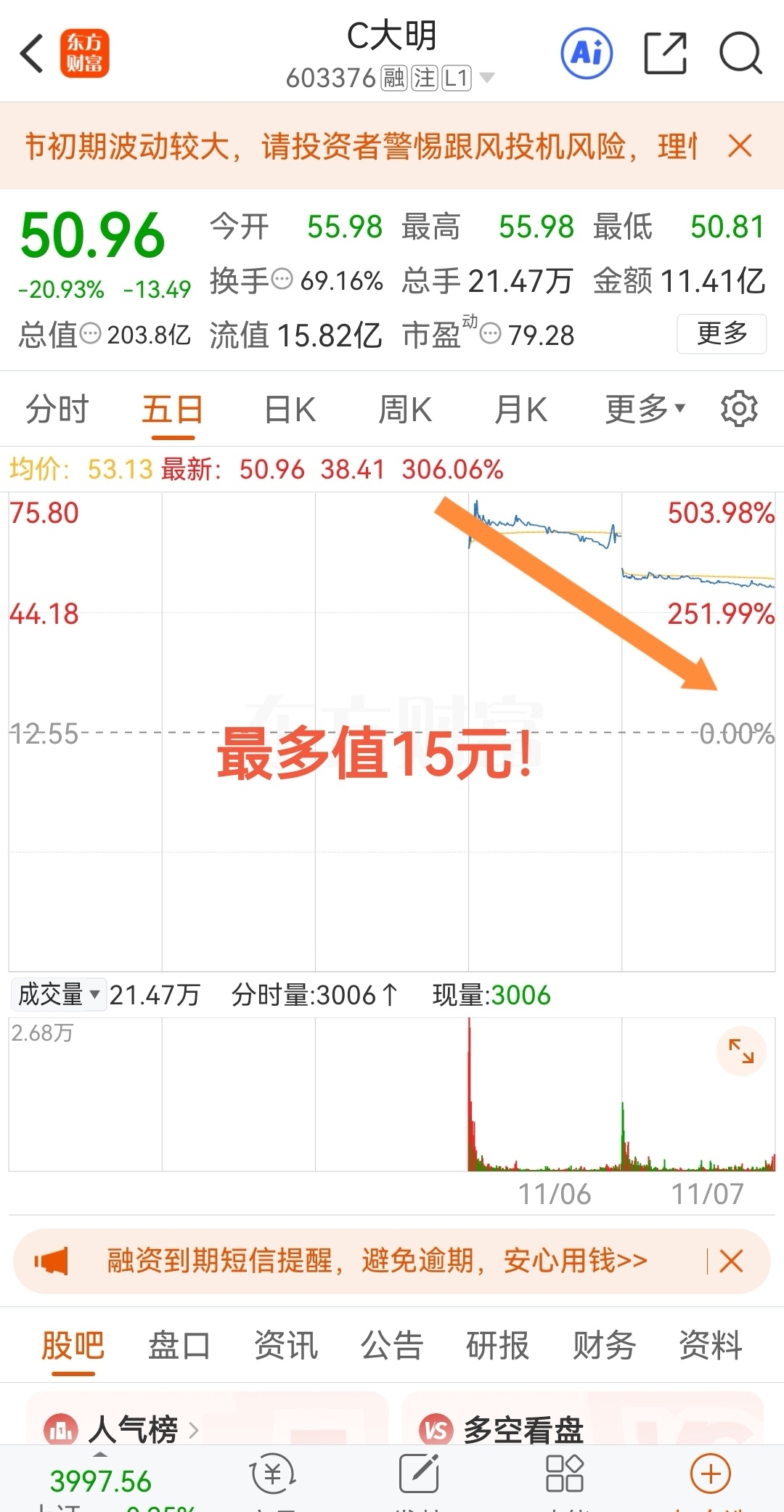 我说最多值15元!可能还说高了一点!目前来看最多值10元!