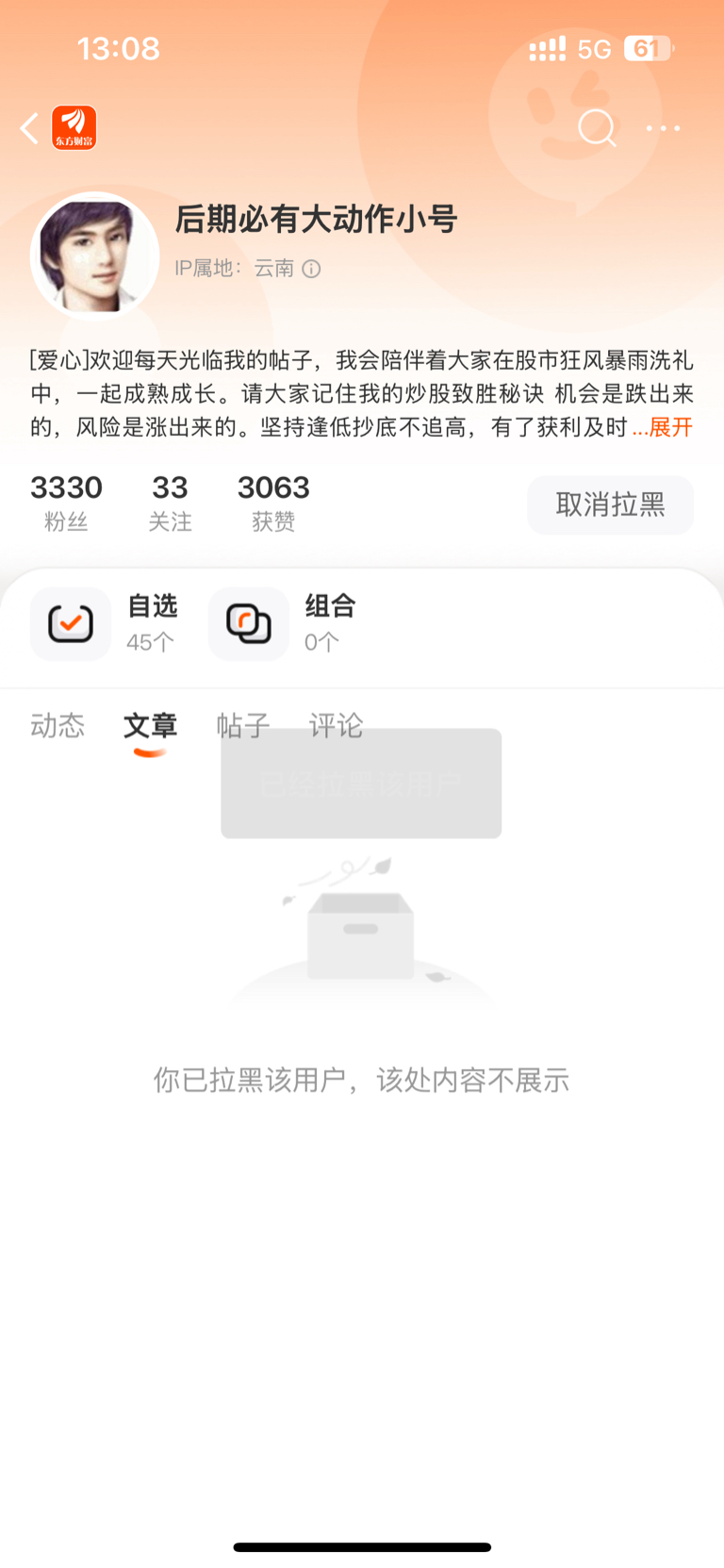 郑重声明:用户在财富号/股吧/博客等社区发表的所有信息(包括但不限于文字、视频、音频、数据及图表)仅代表个人观点,与本网站立场无关,不对您构成任何投资建议,据此操作风险自担。请勿相信代客理财、免费荐股和炒股培训等宣传内容,远离非法证券活动。请勿添加发言用户的手机号码、公众号、微博、微信及QQ等信息,谨防上当受骗!