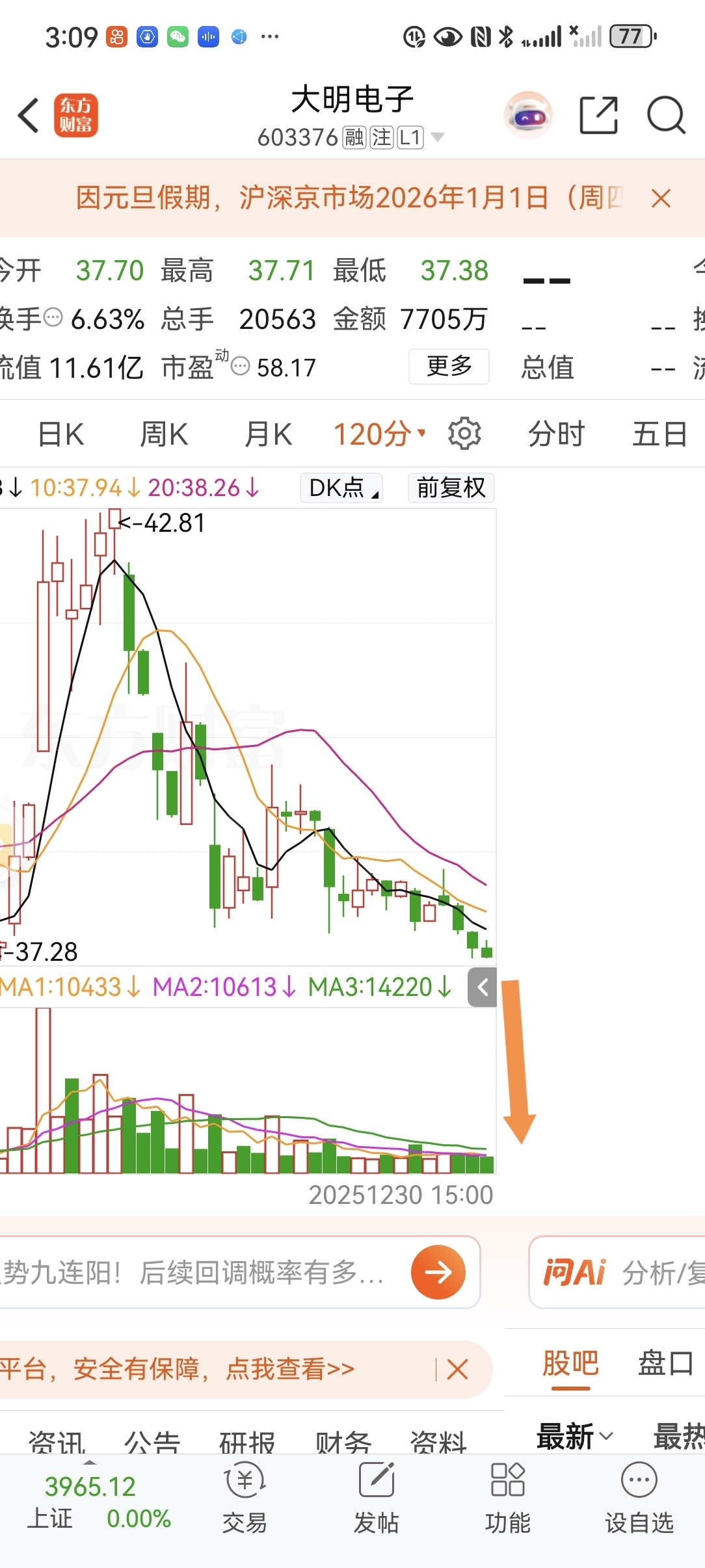 $大明电子(SH603376)$ 大盘风险来了,正好配合大盘杀一下跌