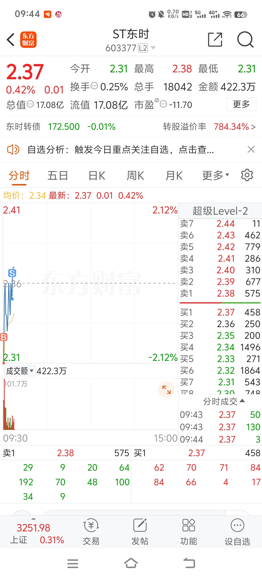 $ST东时(SH603377)$ 我t了你才拉,厉害!