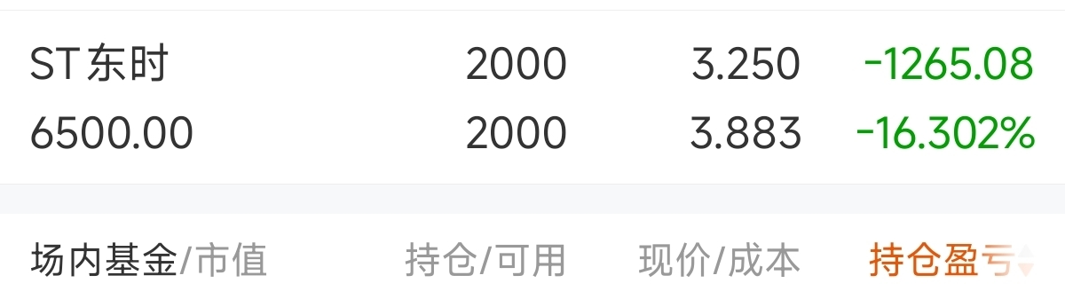 $ST东时(SH603377)$ 终于到了补仓的时机了,还好当时没有冲动,以前动不动干个几万是错误的,必须买这种只能一层仓,跌20%加一次,再跌10%再一次