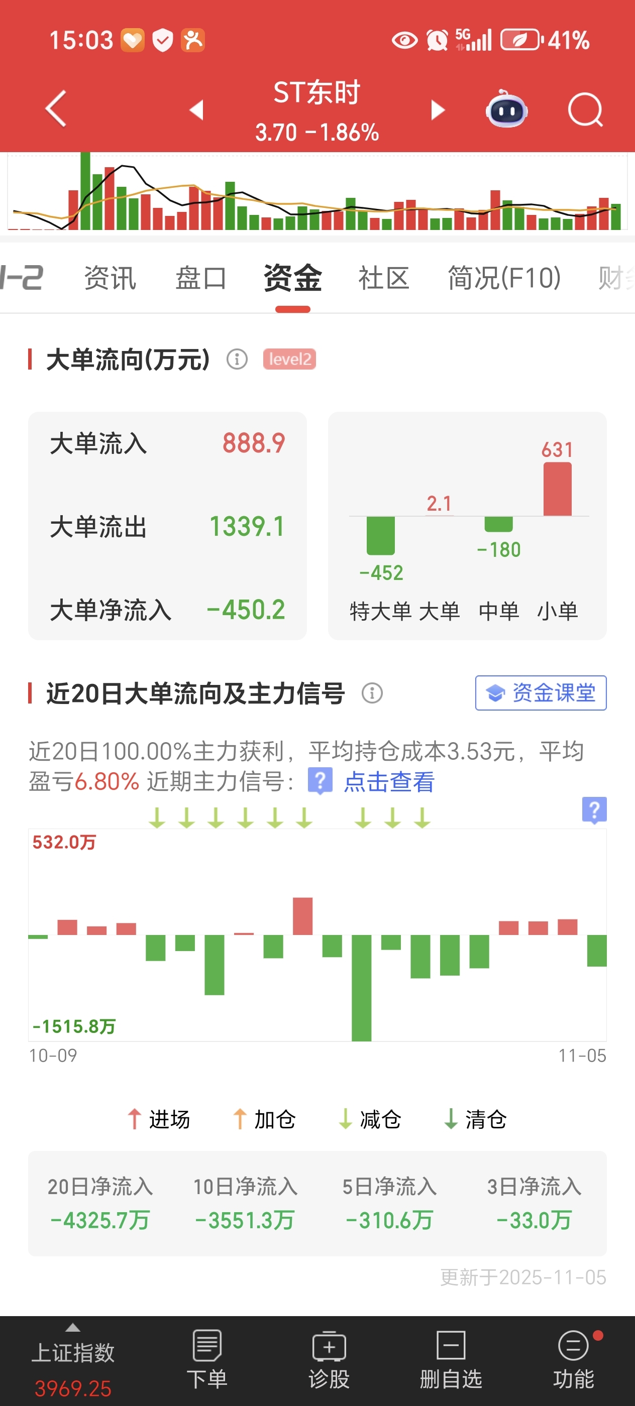 $ST东时(SH603377)$ 看这资金流入流出,只能说主力真有钱