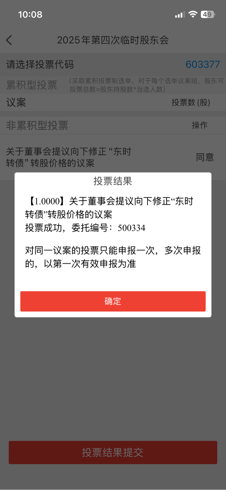 $ST东时(SH603377)$ 不要忘记投票了!各位股友们~